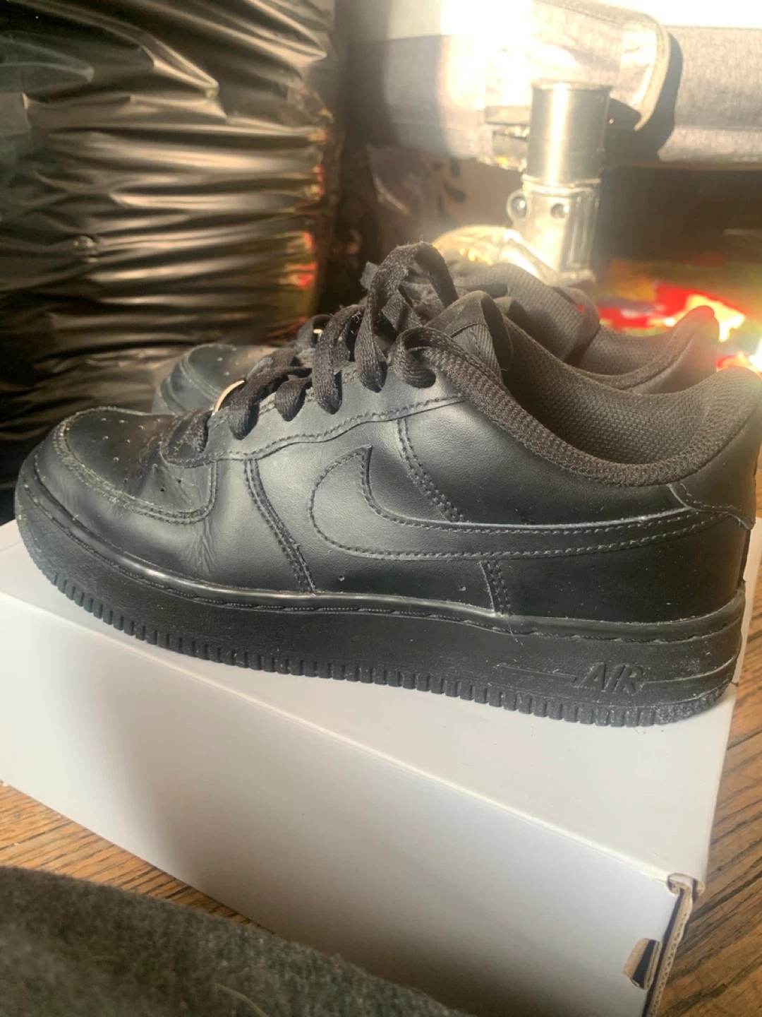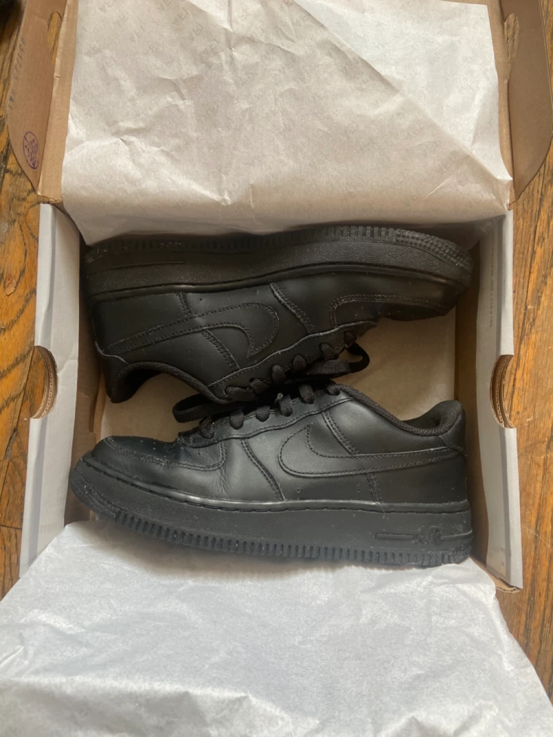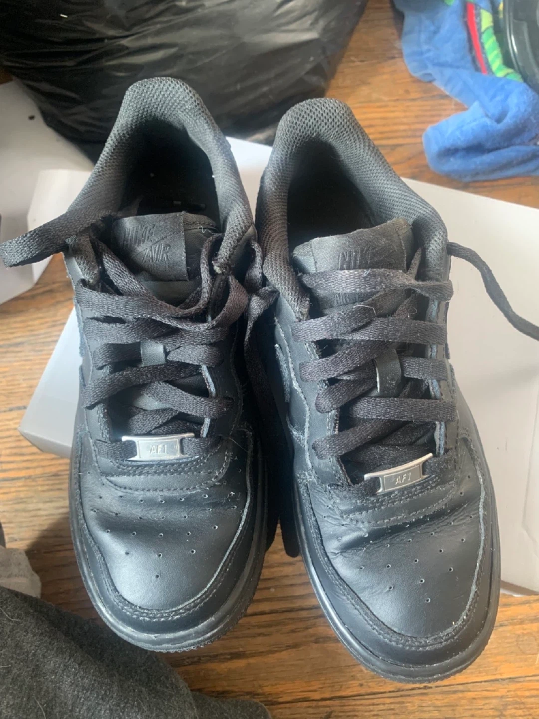 Price firm selling a pair of black Nike Air Force 1s. still have lots of life left! Comes with the original box it’s size 5Y so 6.5US womens or mens size 5 roughly 23.5cm length meet up Bloor/Bathurst. Can provide a video to get a better understanding of condition