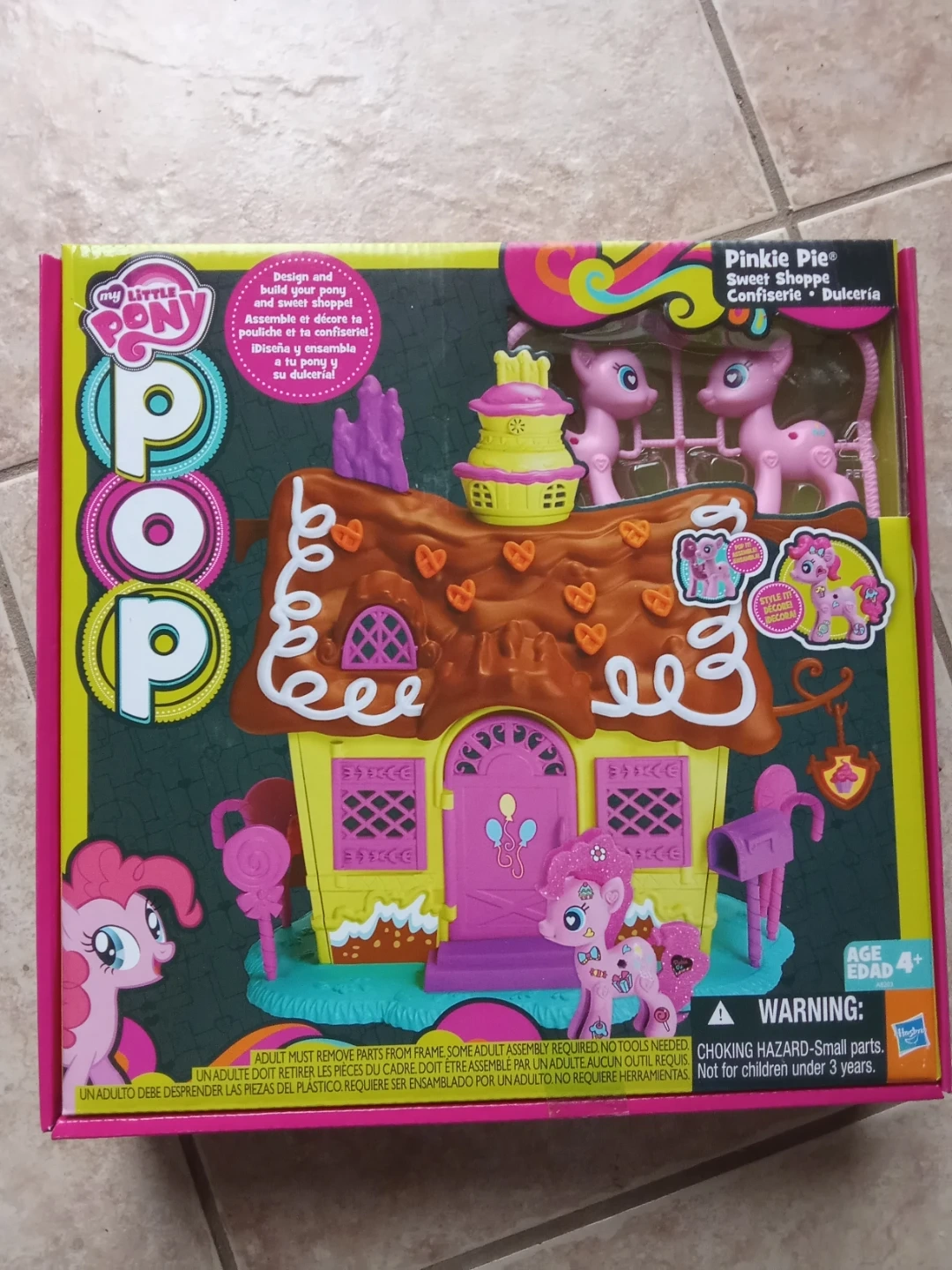 Selling a My Little Pony POP Pinkie Pie Sweet Shoppe set! It's a super cute set for creating your own sweet shoppe. The box includes pieces to assemble the Pinkie Pie's sweet shoppe. Recommended for ages 4+