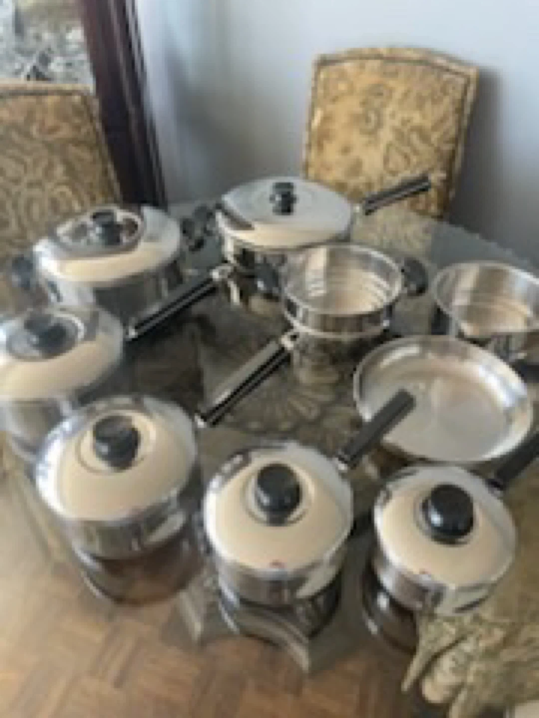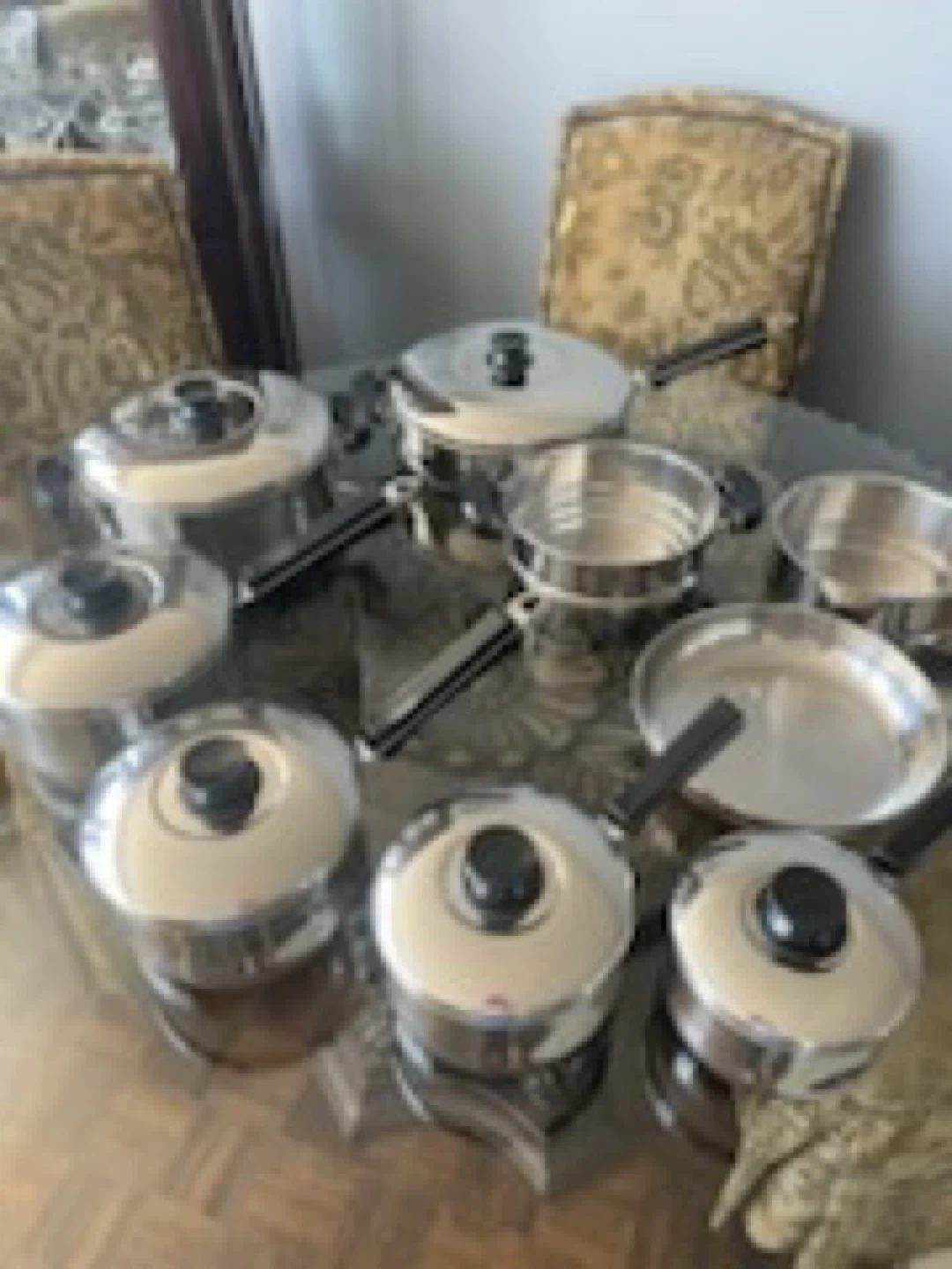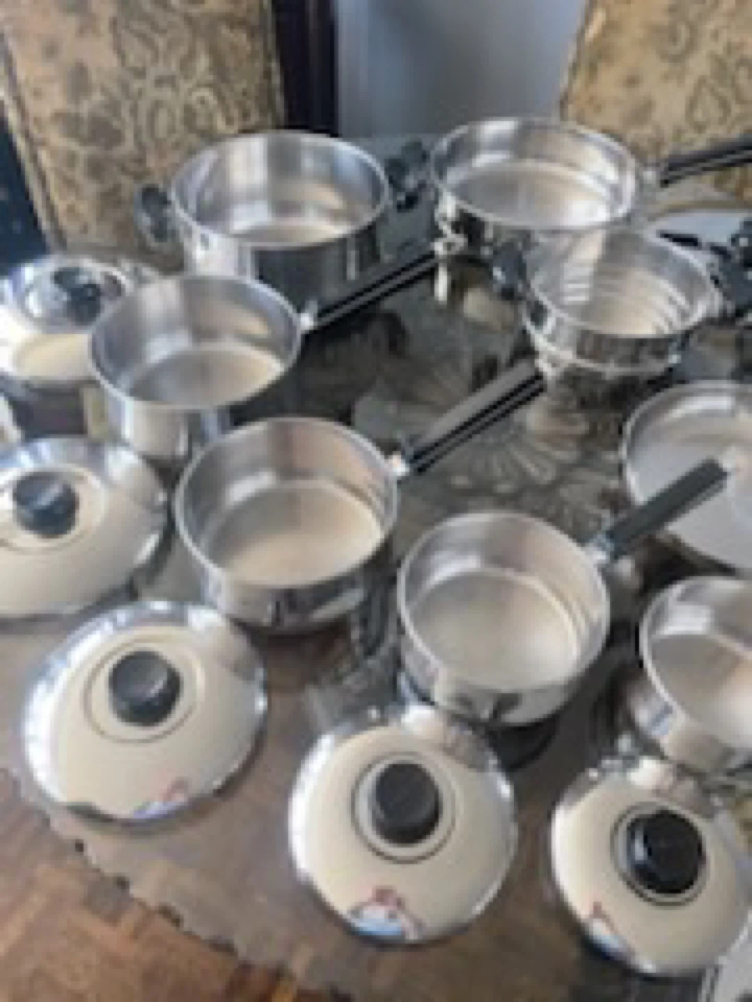 15 piece cookware set stainless steel beautiful set all lids with removable handles for oven use.