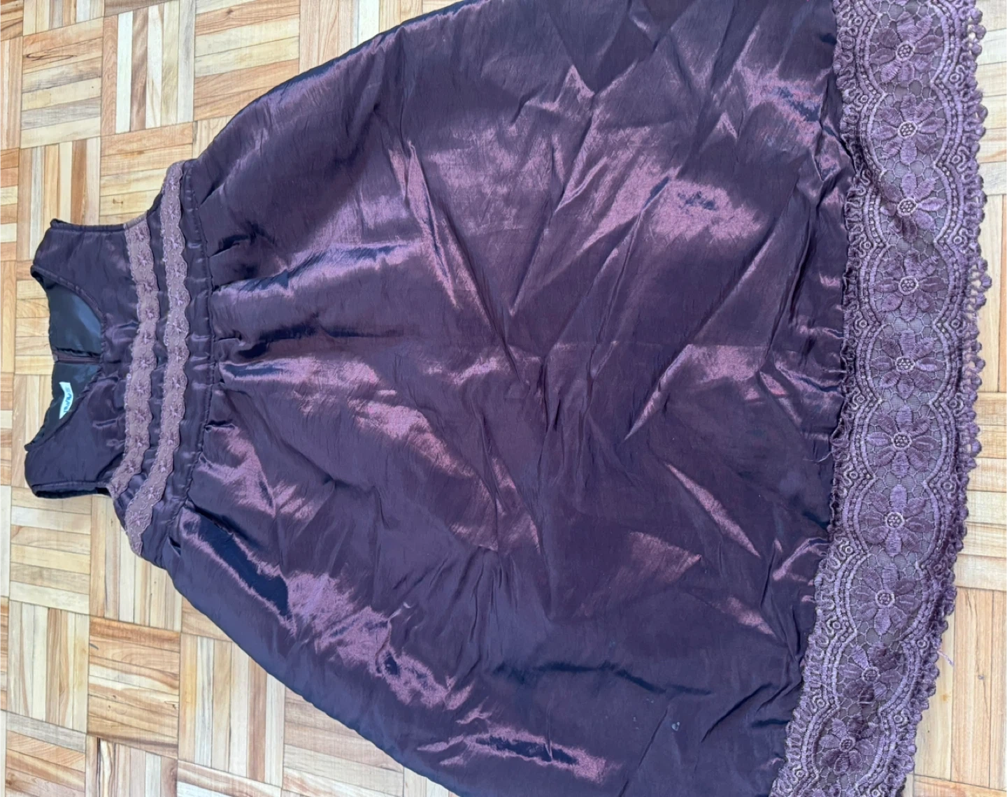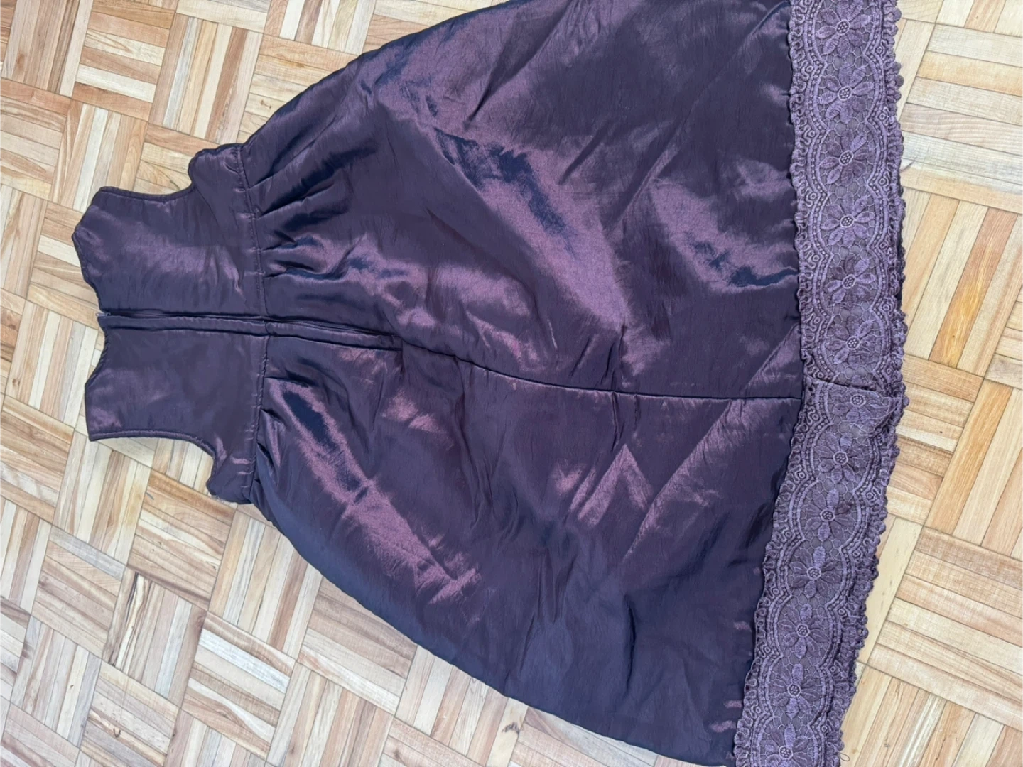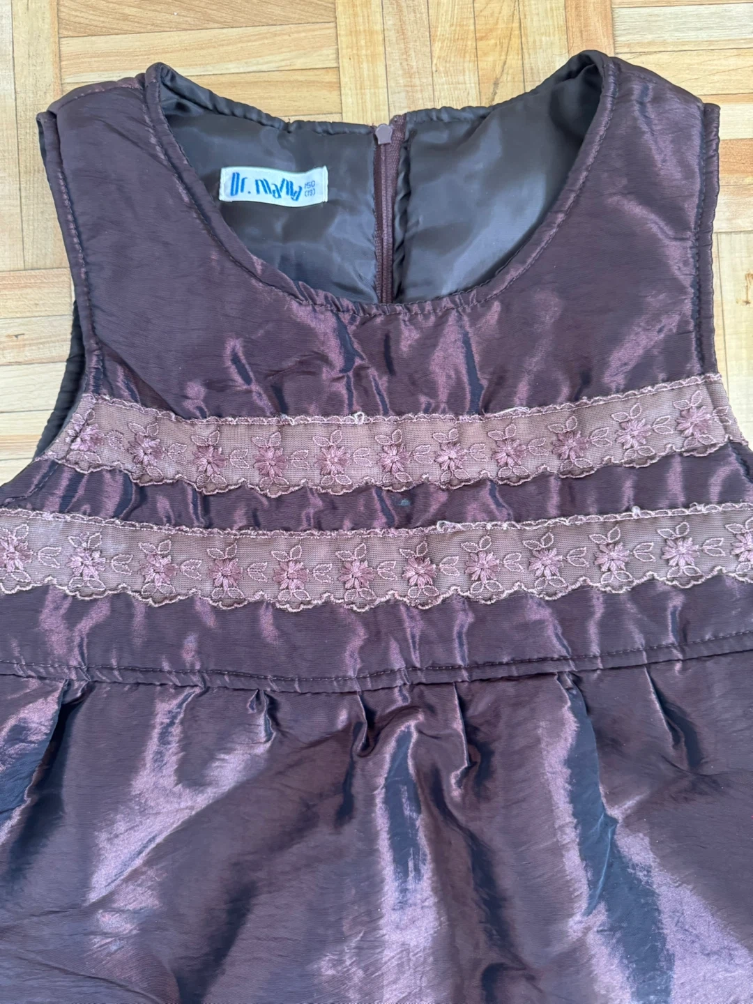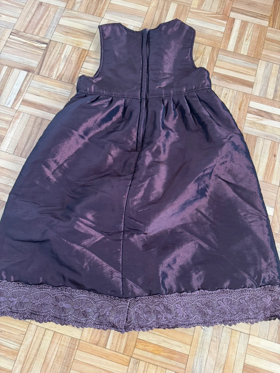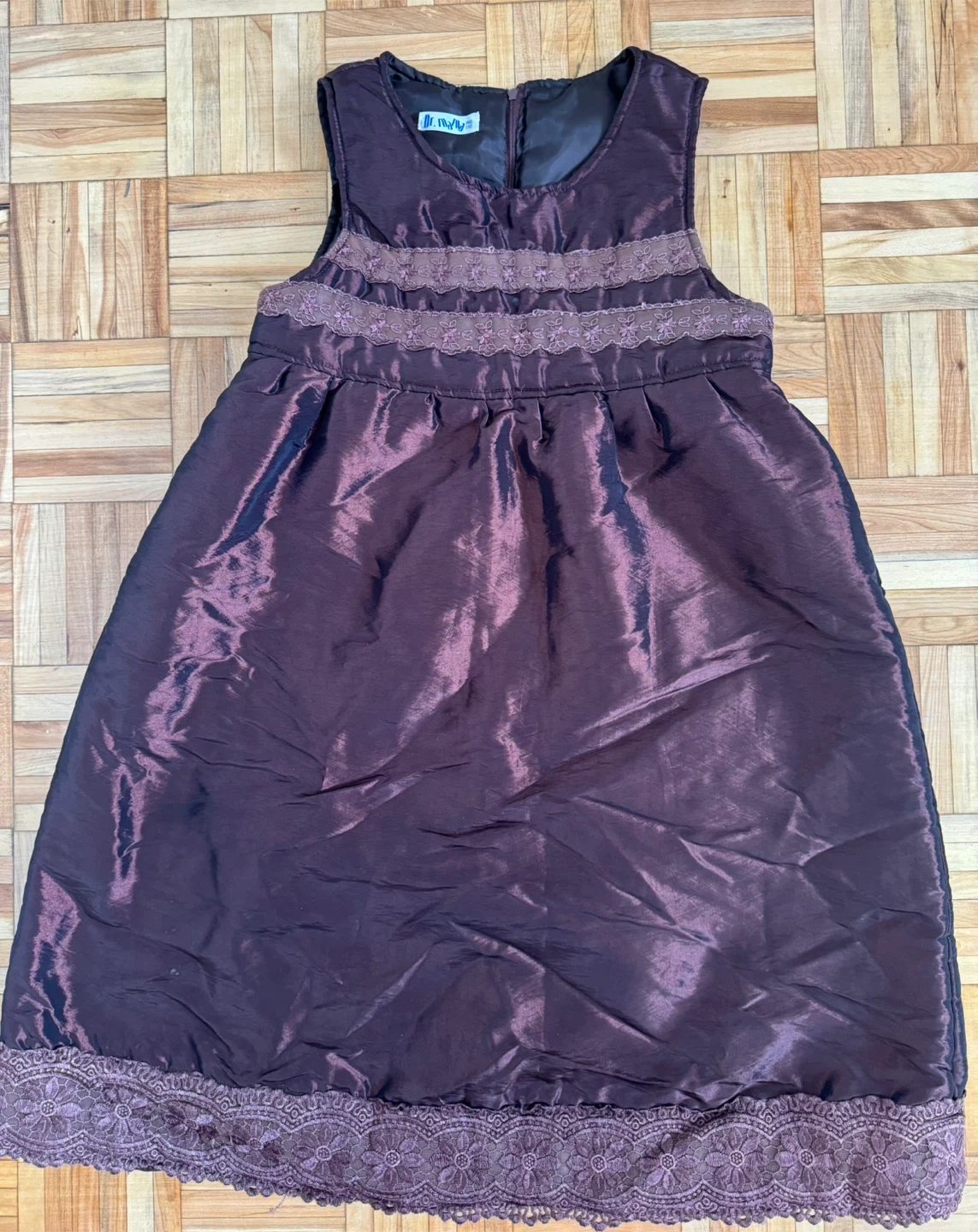 A lovely girls' dress in a beautiful shade of brown with delicate lace accents. It's in great condition and perfect for any special occasion or just for dressing up!