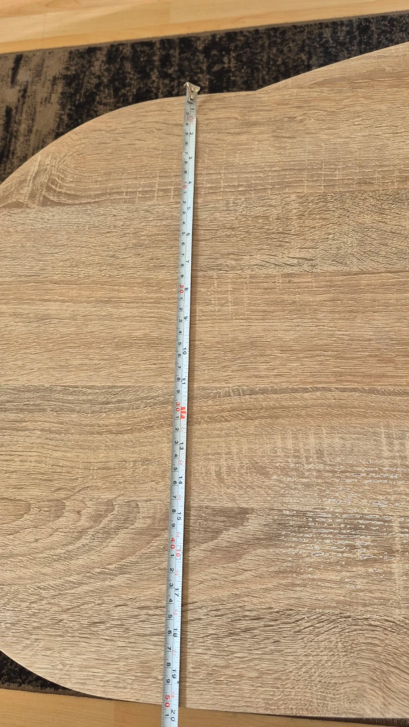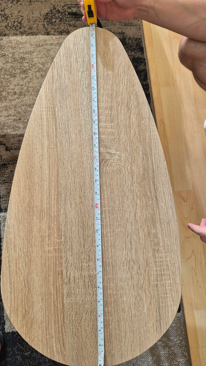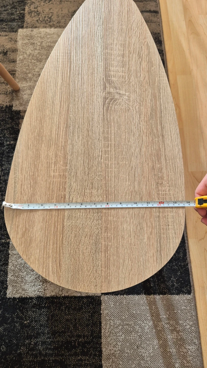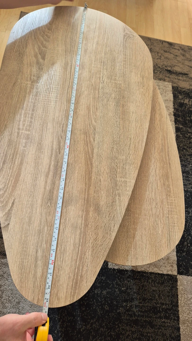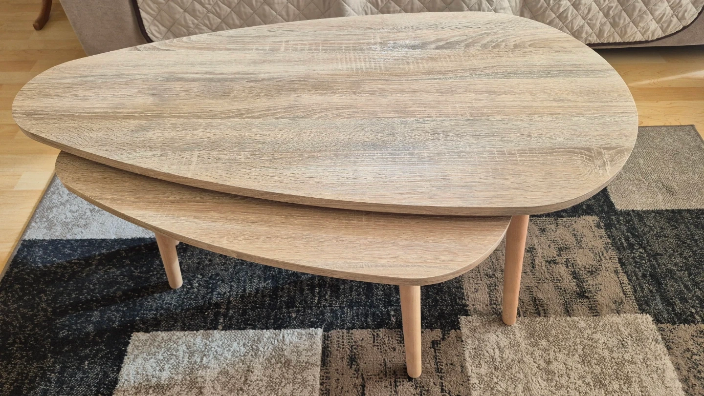 Selling a set of nesting coffee tables with a lovely wood finish! The larger table is about 27 inches long and 19 inches wide, while the smaller one fits neatly underneath. Perfect for adding a touch of style to your living room