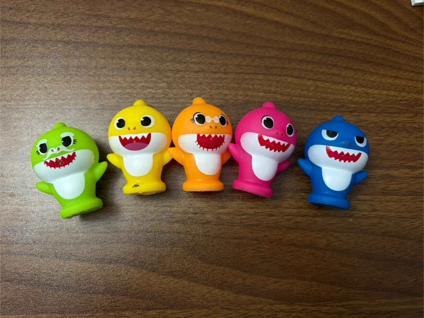Selling a set of five Baby Shark fingerlings toys! These colourful little sharks are perfect for kids who love the Baby Shark song. Includes green, yellow, orange, pink and blue sharks.