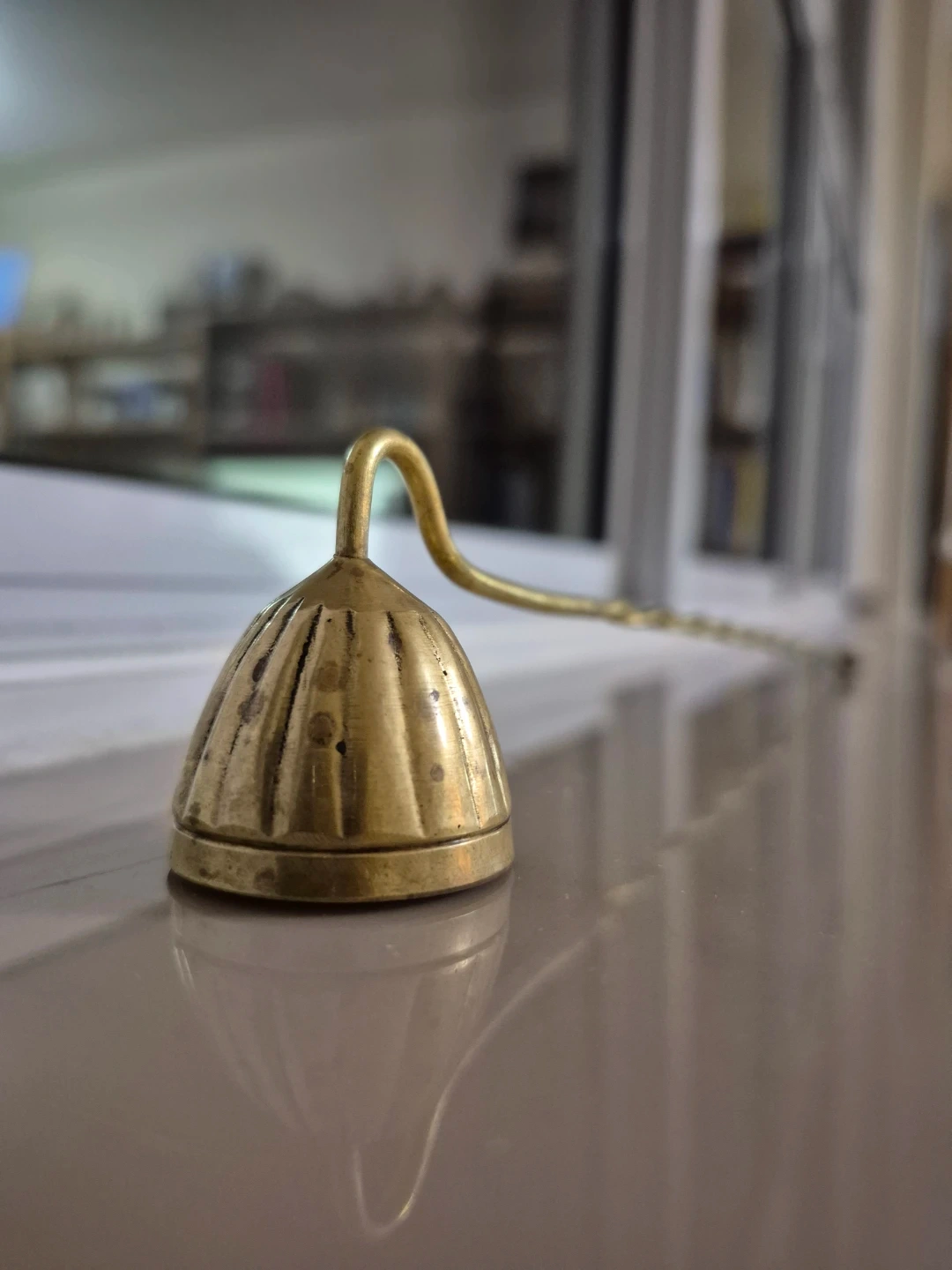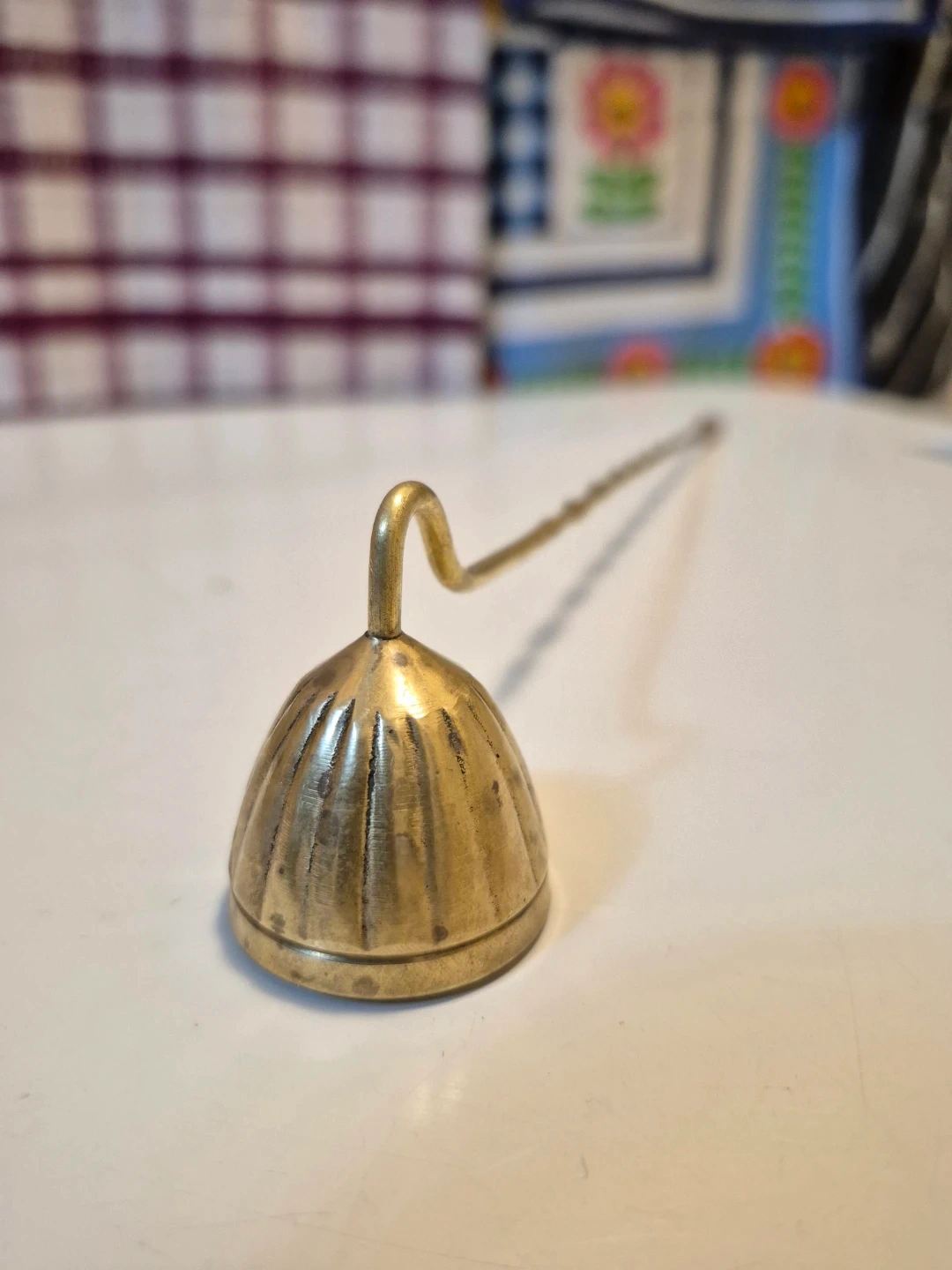 ◉ Vintage/Antique brass candle snuffer, 11" long. Bell is 1.25" wide at bottom. Strong, sturdy, in excellent condition.
