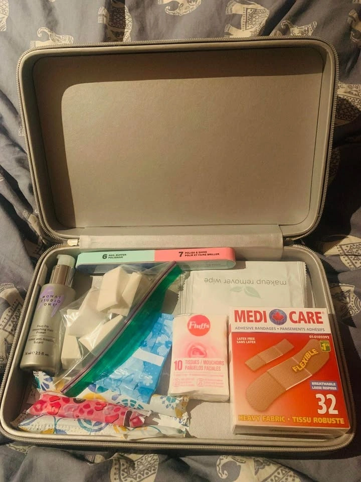 Great condition Artistry case with various personal care items. Includes band-aids, cotton balls, and other essentials.