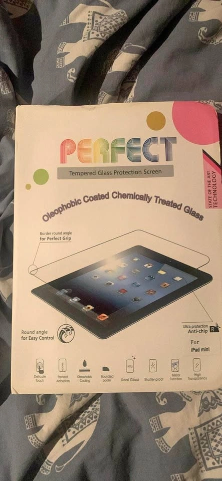 New tempered glass screen protector for iPad mini. Has oleophobic coating and is chemically treated. Still in original packaging.