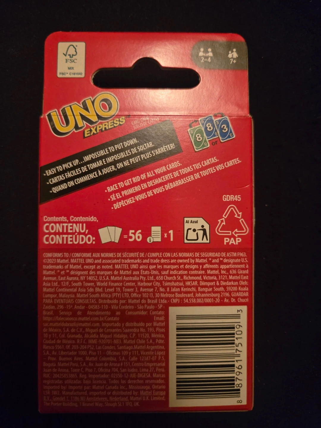 Selling a gently used UNO Express card game by Mattel! It's a fun, quick version of the classic game. Perfect for ages 7+ and for 2-4 players. Easy to pick up and impossible to put down!