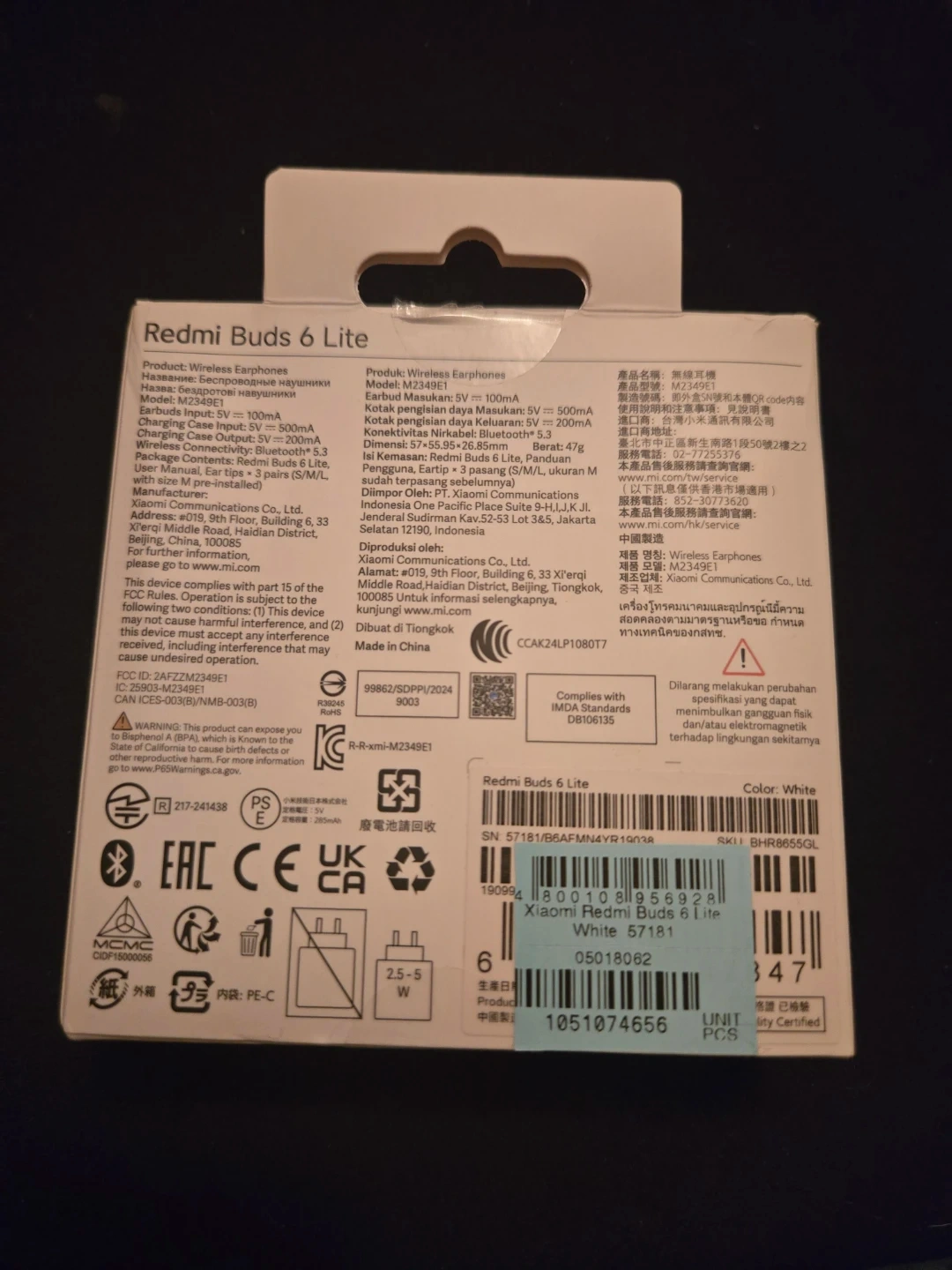 Selling a pair of Redmi Buds 6 Lite in white. They are in excellent condition and come with the original box.