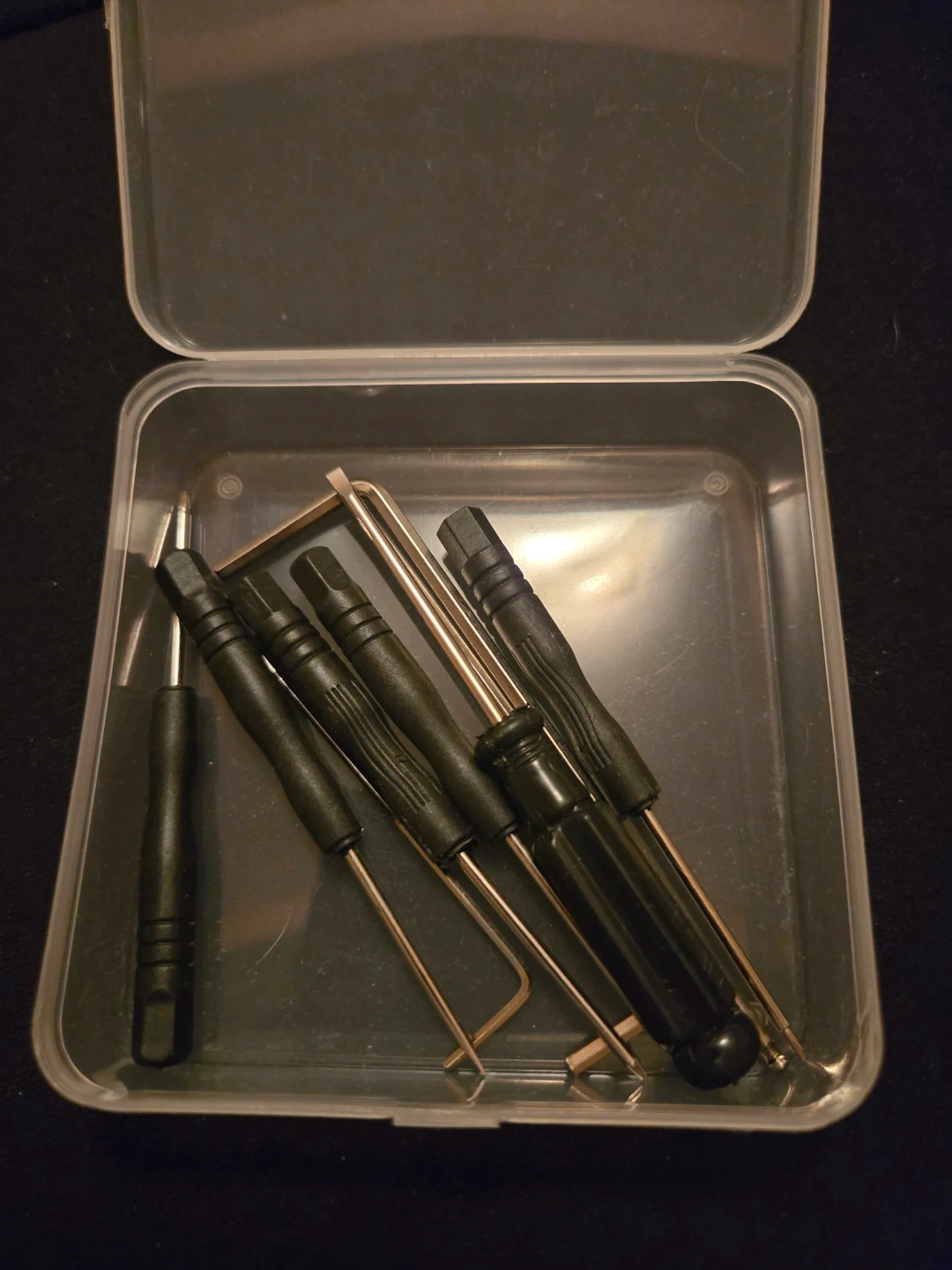 A handy screwdriver set with various sizes and types, all neatly organized in a clear plastic case. Perfect for small repairs and DIY projects around the house!