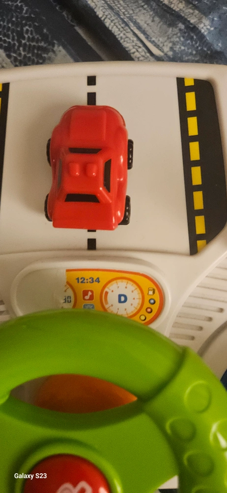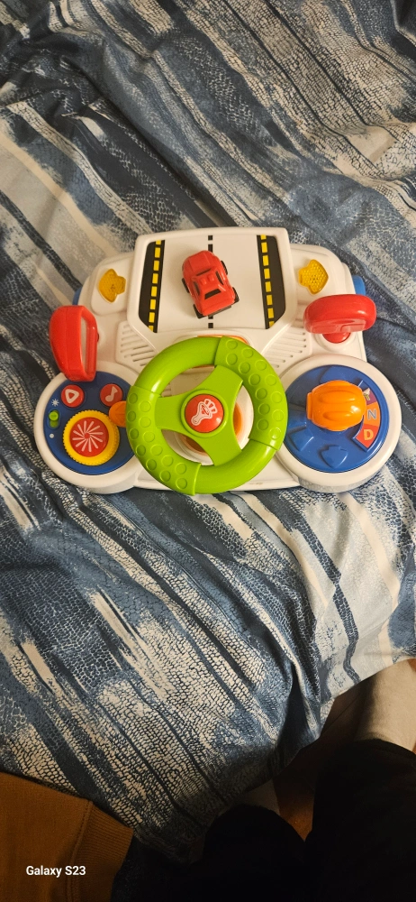 Car toy for kids with moveable steering wheel, mirrors gear stick and car. Just a small malfunction. on the right turn signal but nothing else
