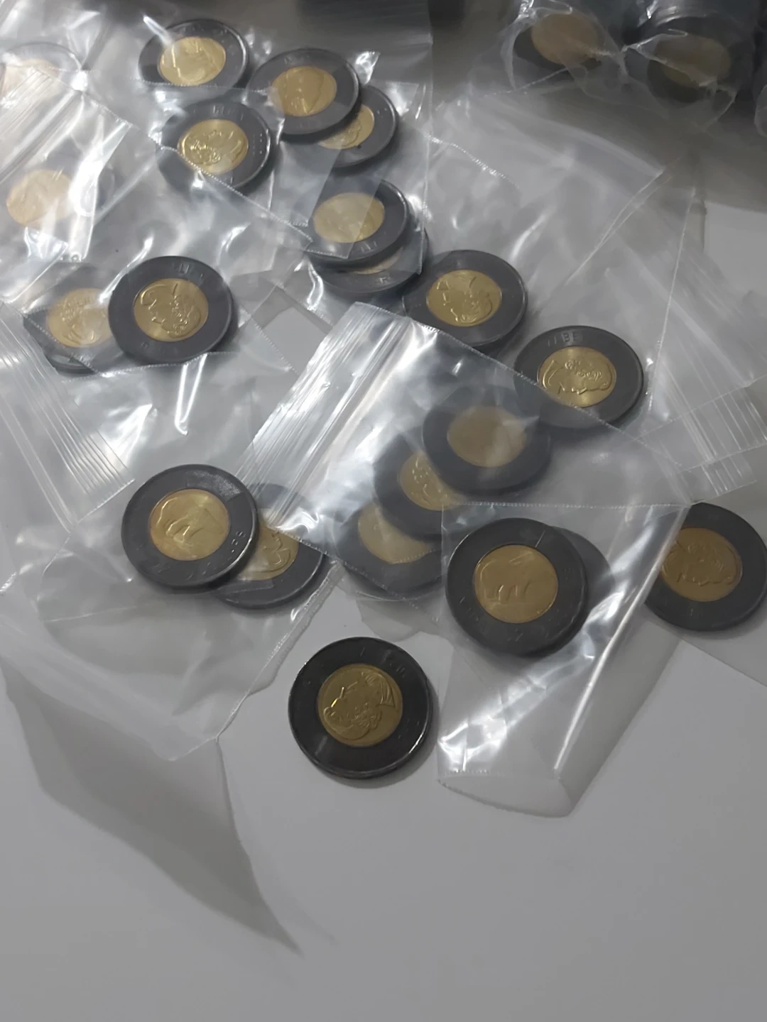 Selling a collection of Canadian Toonie coins from 2022. They feature the polar bear design on one side and Queen Elizabeth II Tribute Black Ring. Uncirculated, untouched by bare hand, from mint roll. Perfect for collectors or anyone looking to add to their coin collection!