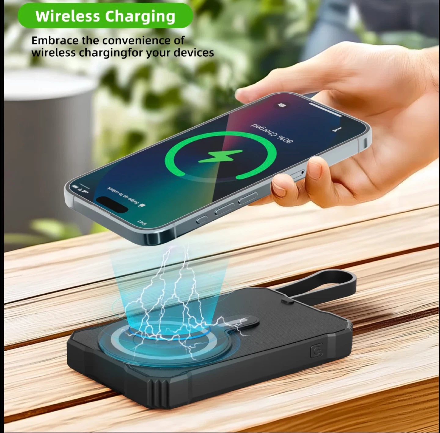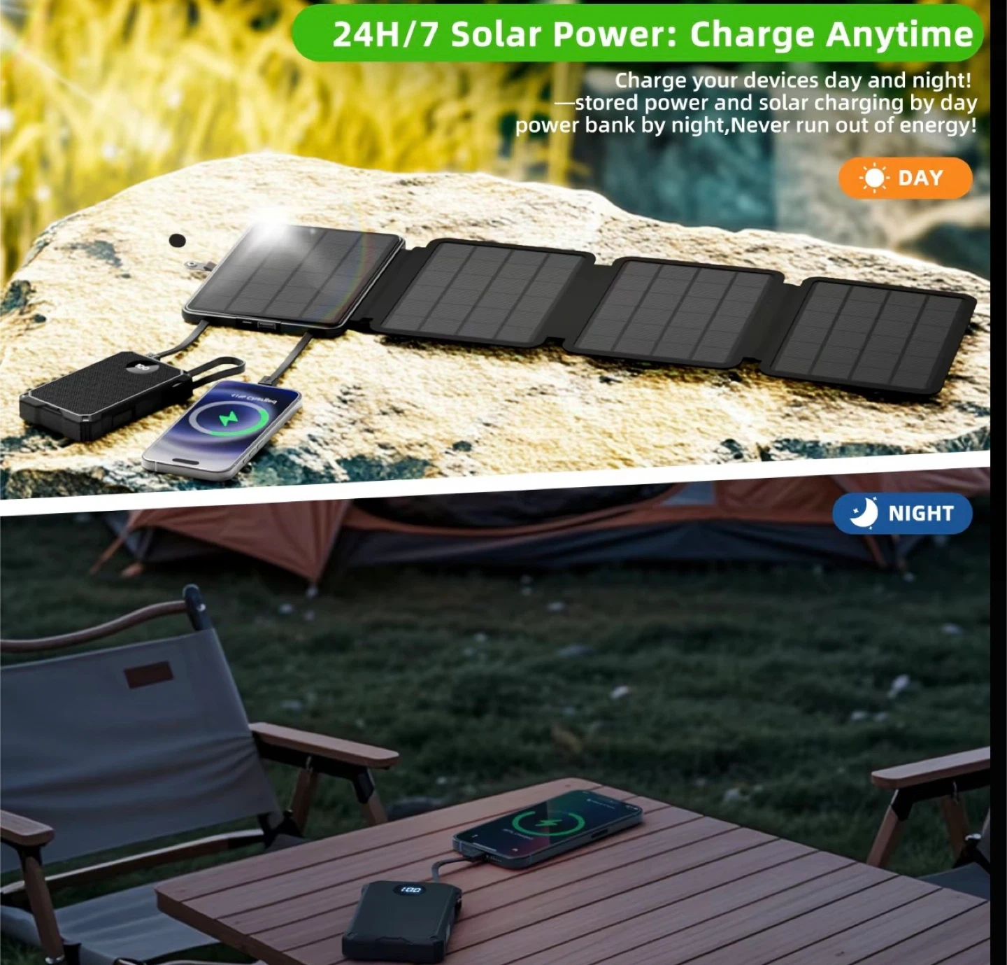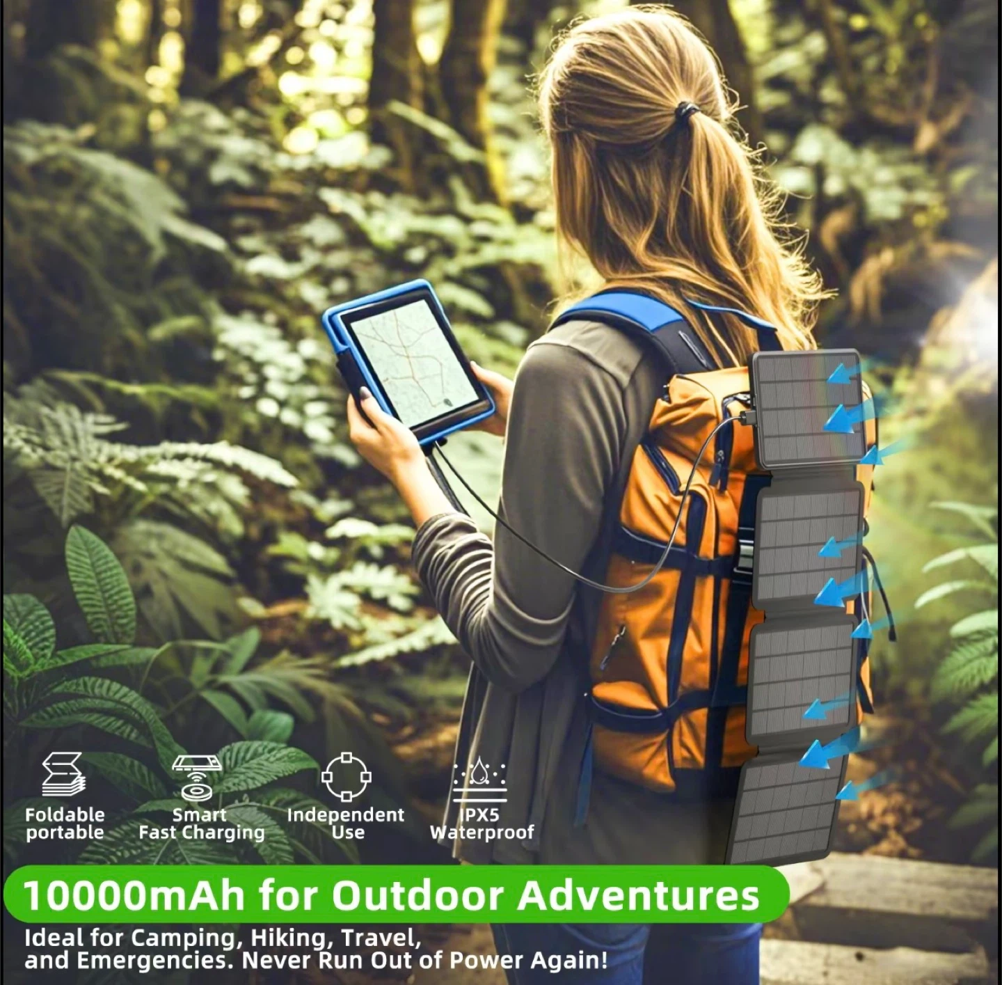 10000mAh Solar Power Bank, Detachable Solar Panel, 14W Foldable, Magnetic Charging, 5 Port Fast Charging, IPX5 Waterproof, Works Separately for Phones/Tablets, Camping Outdoor