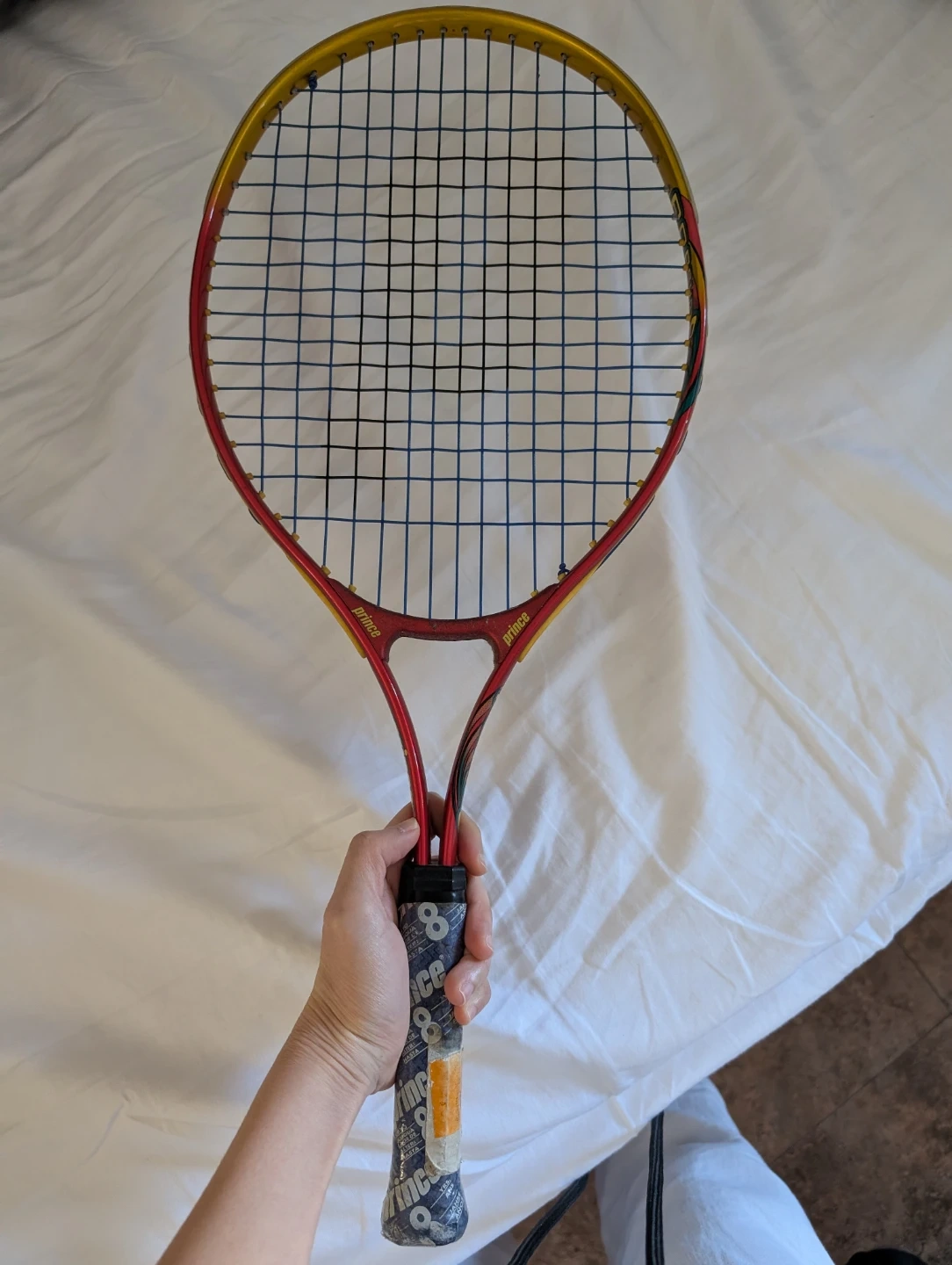 Selling a Prince junior tennis racquet. It has a red and gold color scheme.
