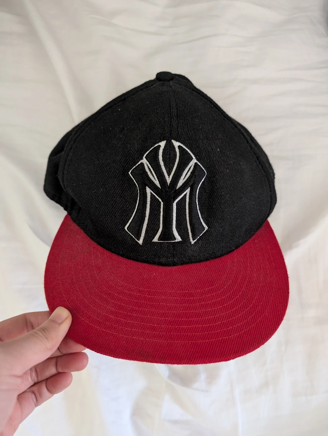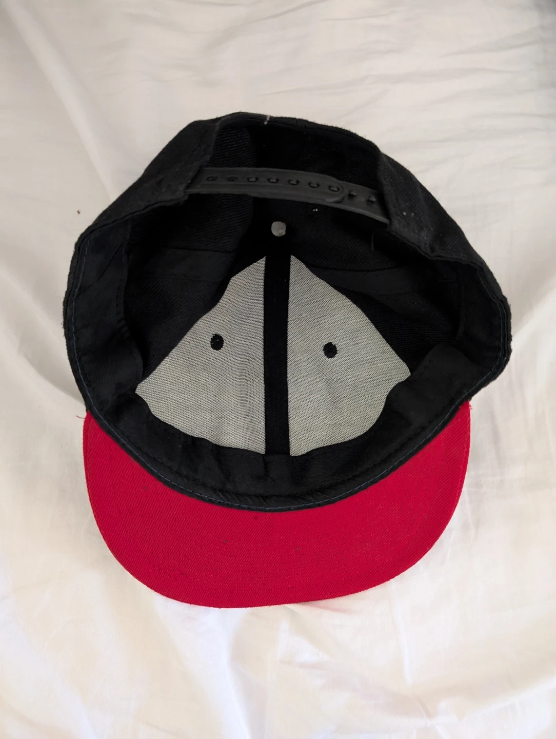 Selling a hat in great condition! The hat has a black crown and a red brim, giving it a stylish look.