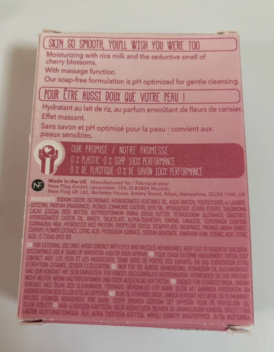 Selling a FOAMIE Shower Body Bar in the Cherry Blossom scent! It's moisturizing and 100% plastic-free. This shower body bar is formulated to be pH optimized for gentle cleansing with rice milk and cherry blossoms. Net weight is 2.8 oz (80g)
