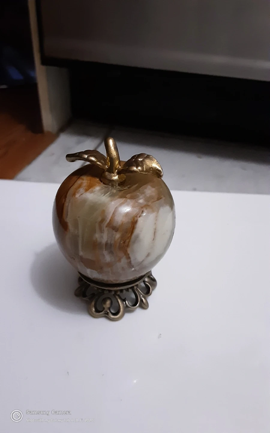 Here's a lovely decorative Onix stone apple. It has a unique design and would look great as a centrepiece or on a shelf. It's in great condition!