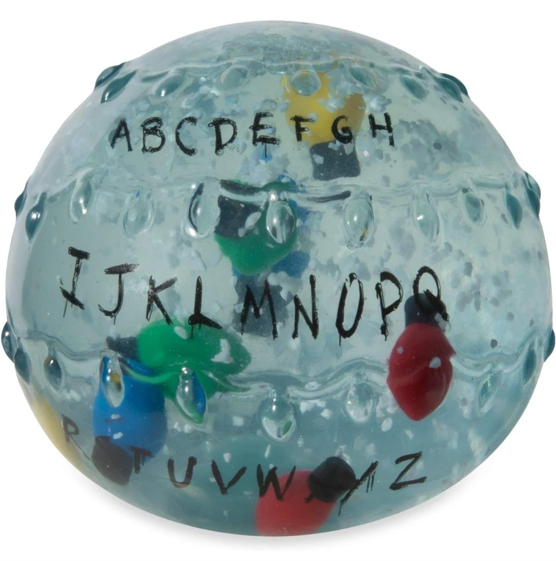 Contact the Upside Down with this ultra-collectible Stranger Things Alphabet Ball! Squeeze and stretch the ball to feel mysterious orbs and Christmas lights flow in and out of view, lining up with the letters printed on it. Can you interpret Will's message?