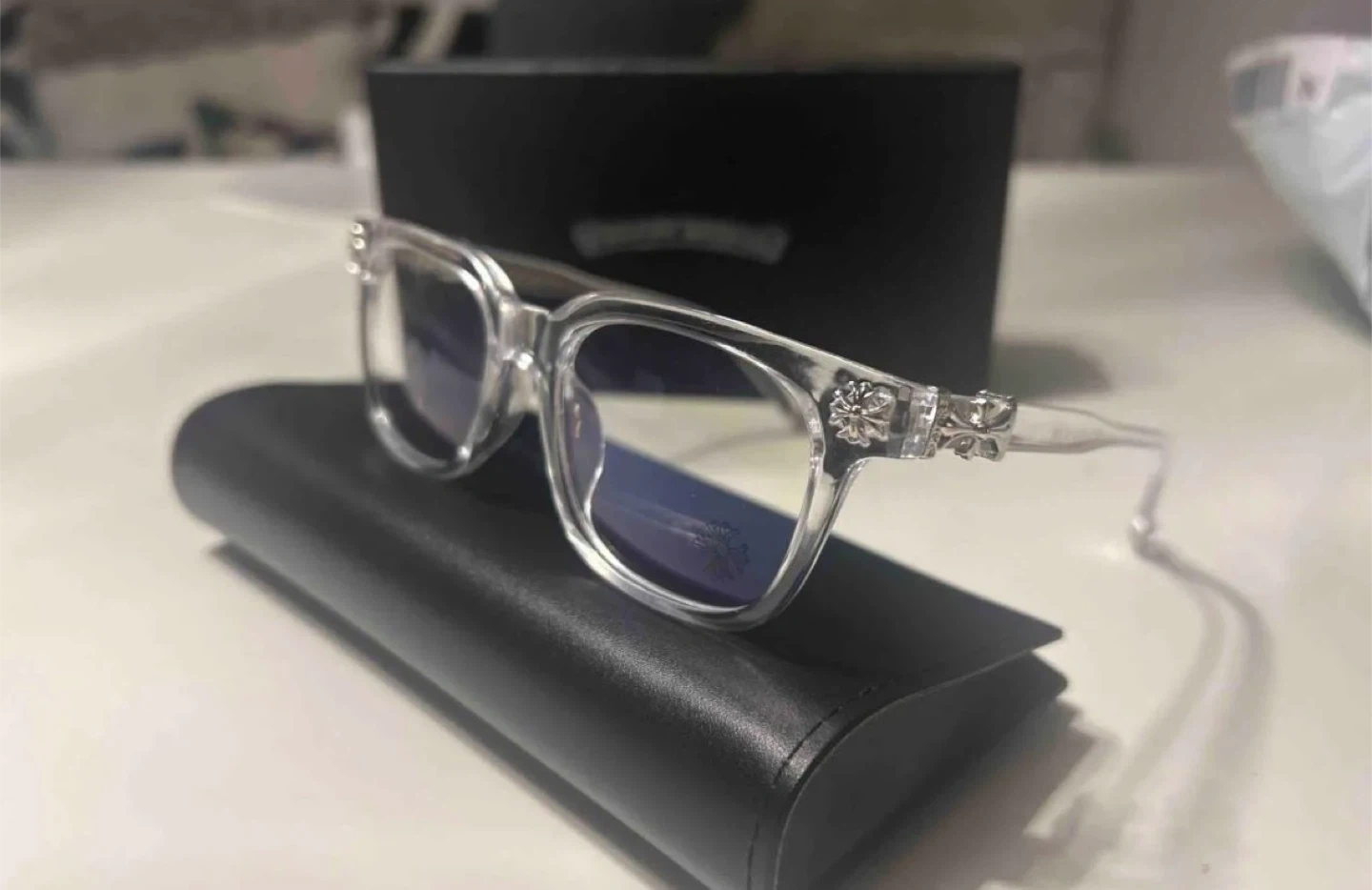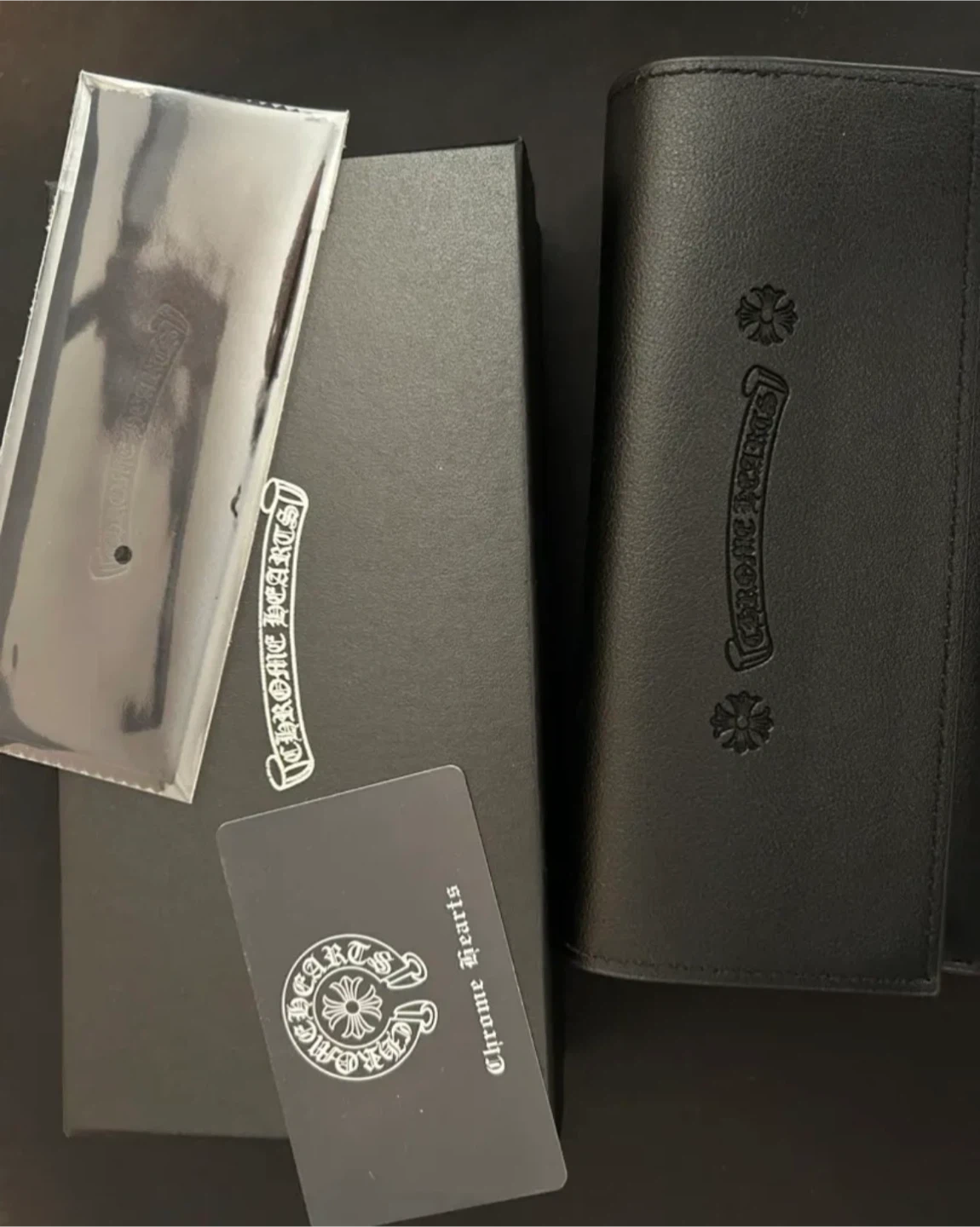 Selling a pair of Chrome Hearts eyeglasses and a leather card holder. Both items are in excellent condition and come with their original boxes. The eyeglasses feature a stylish design, and the leather card holder is perfect for keeping your cards organized. Great for Chrome Hearts fans