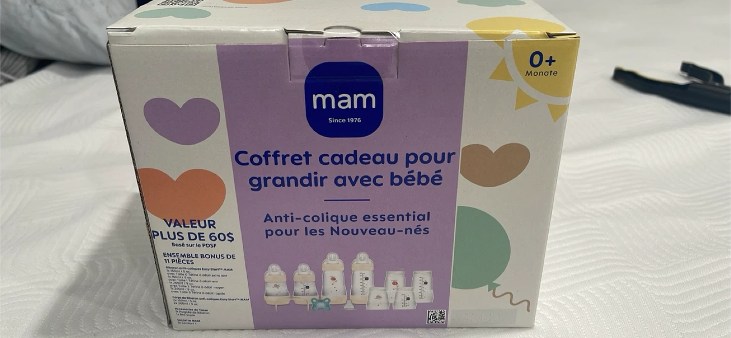 Selling a MAM baby gift set, perfect for newborns! This set includes anti-colic bottles and accessories, with a total of 11 pieces. It's designed to help your baby grow and is essential for newborns. Suitable for ages 0+ months