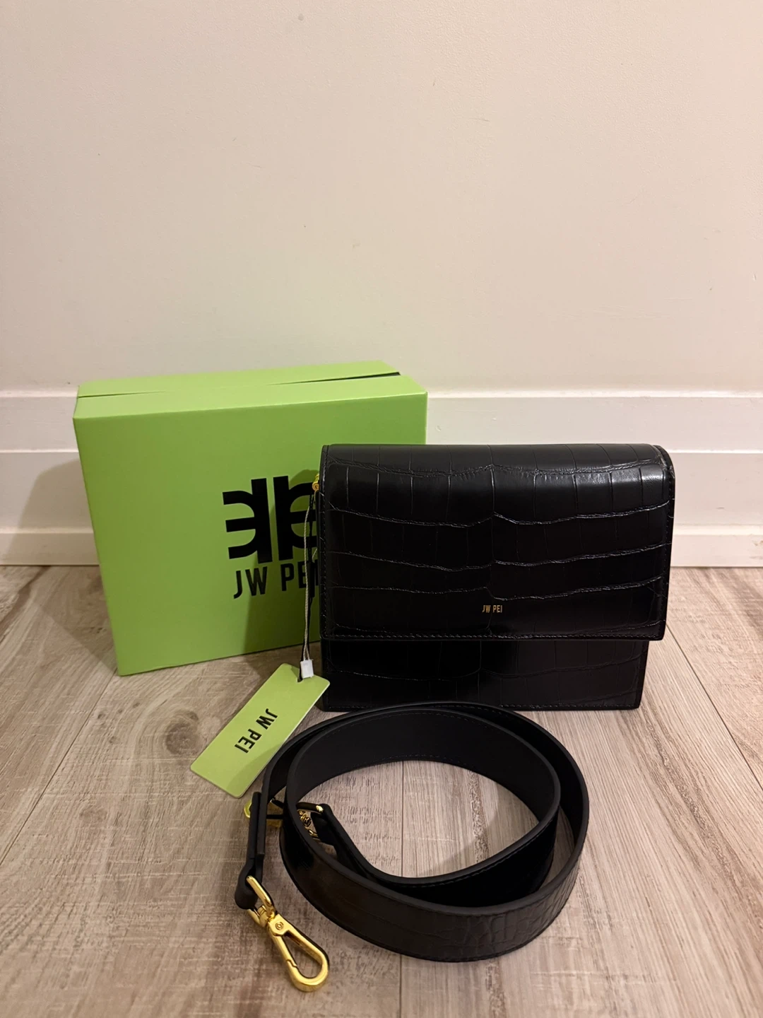 Selling a JW PEI black handbag made of vegan leather. It comes with its original box, tag and dust bag. The bag is in new/unused condition and ready for a new owner!