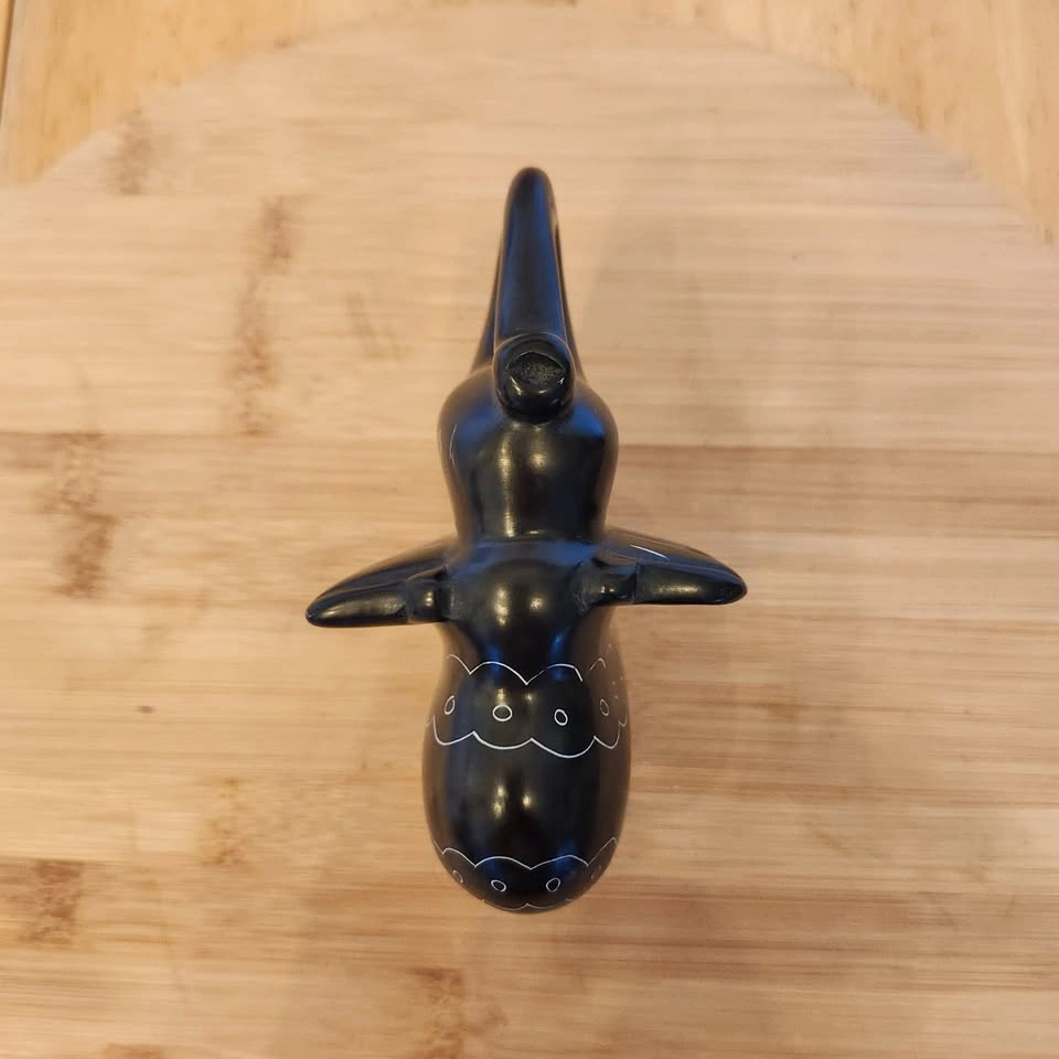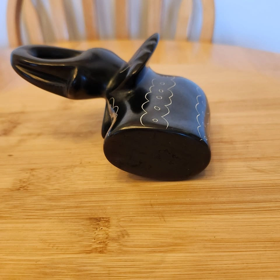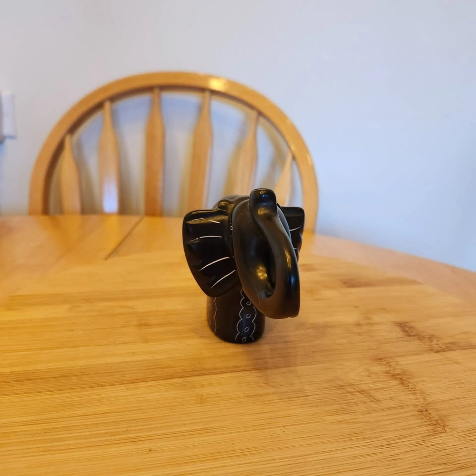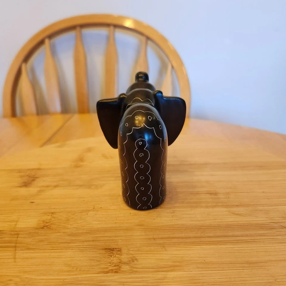 This exquisitely carved soapstone elephant is detailed with white accents.