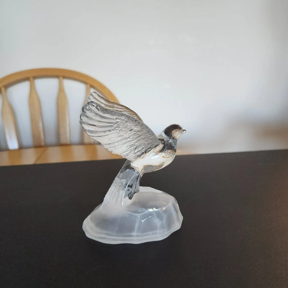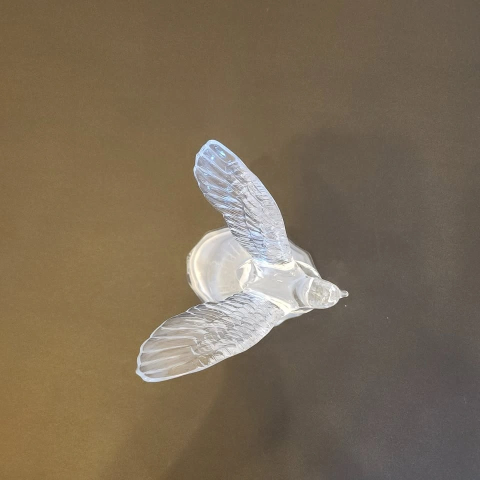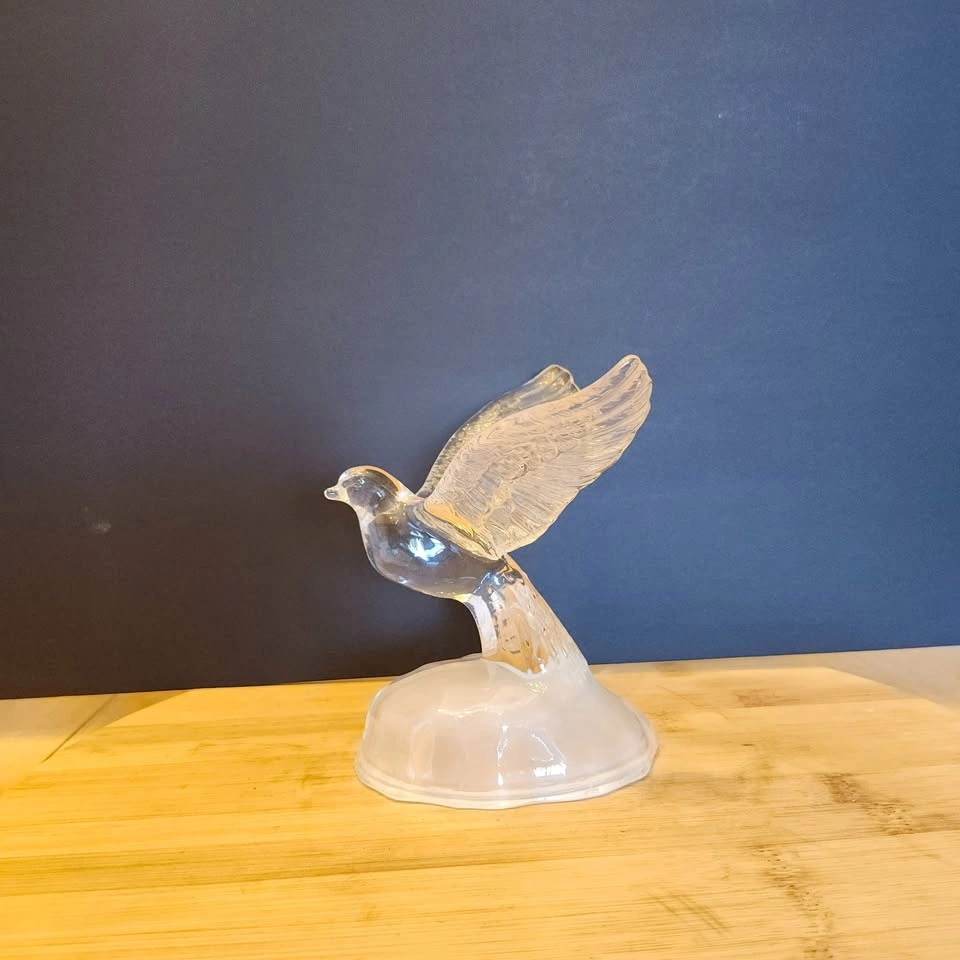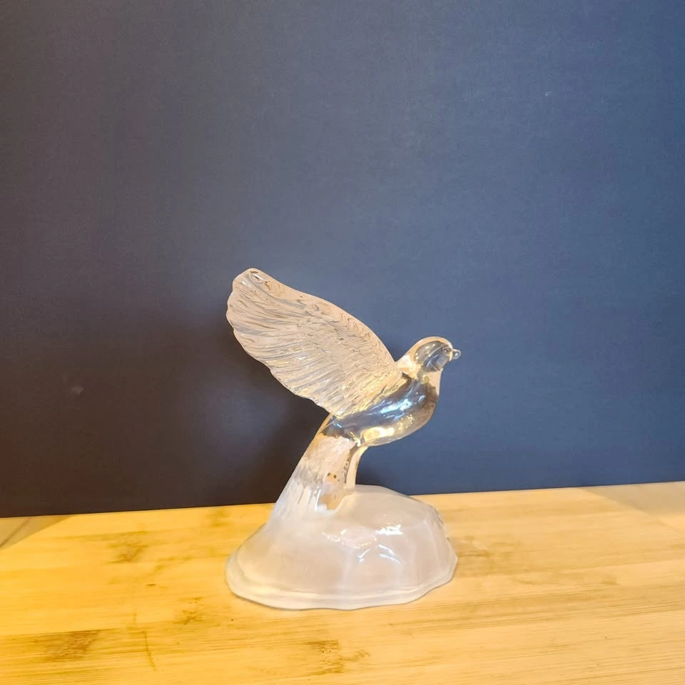 It features the dove in clear crystal with wings spread, and mounted on a frosted base.