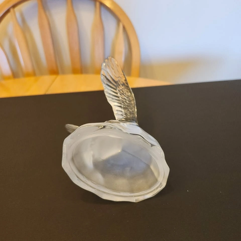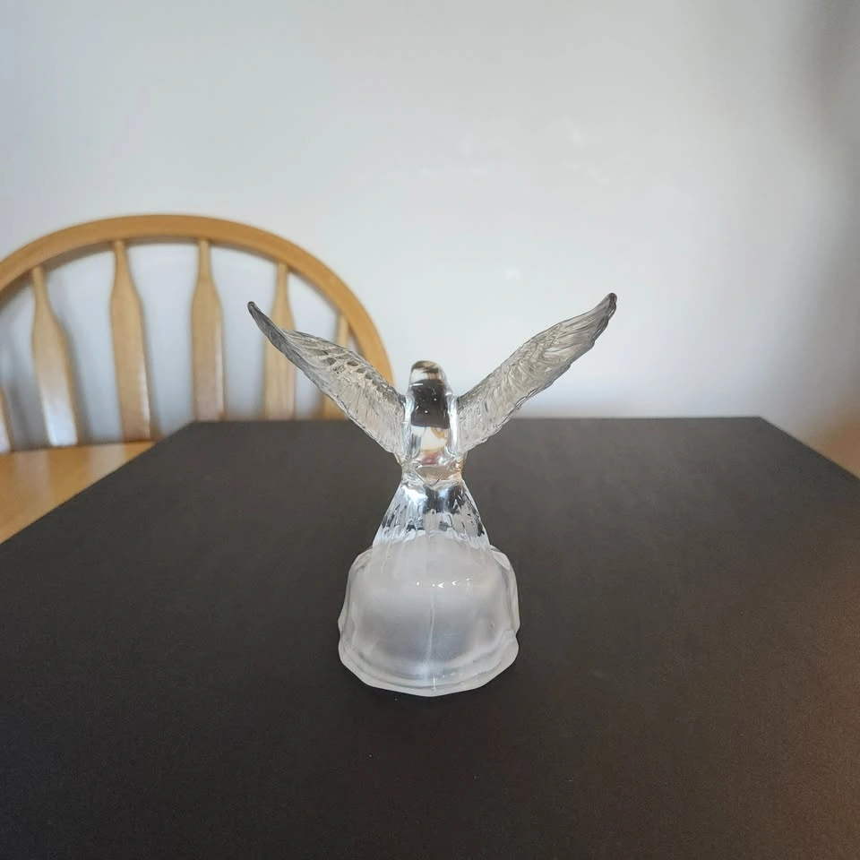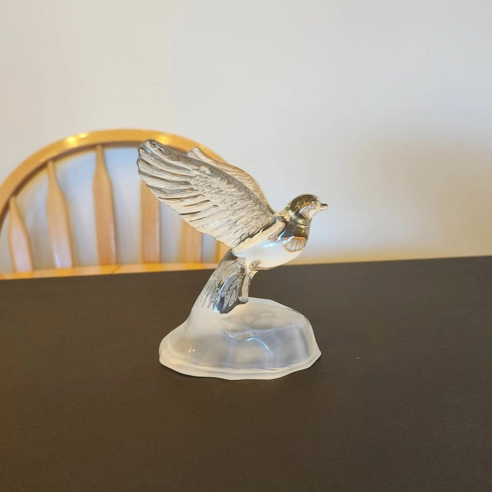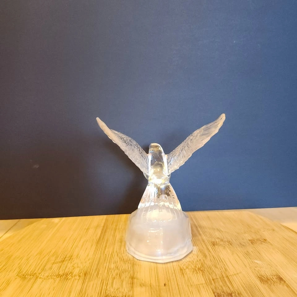 It features the dove in clear crystal with wings spread, and mounted on a frosted base.