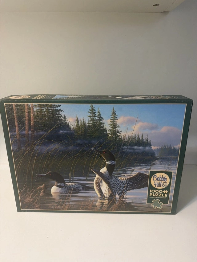 This Cobble Hill puzzle features a beautiful image of loons on a serene lake, perfect for puzzle enthusiasts and nature lovers alike. With 1000+ pieces, this jigsaw puzzle offers a challenging and rewarding experience.