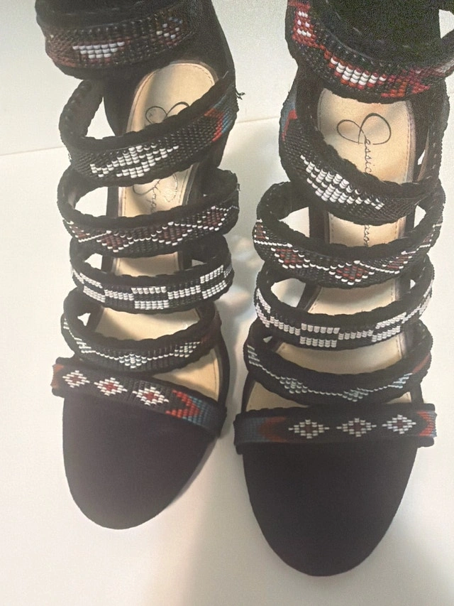 Add some flair to your wardrobe with these stylish Jessica Simpson heels, featuring a unique beaded strap design and a comfortable fit for a night out. They are in great condition, only worn once and they make you feel beautiful. Just a tad too small for me, it is hard to let these one go!!!! Key Features: - Brand: Jessica Simpson - Style: Heeled Sandal - Size: 7M - Colour: Black - Design: Strappy with beaded detailing With an original design and a touch of elegance, these heels are sure to turn heads. Don't miss your chance to own these gems and step out in style! If the ad is still up, yes, it's still available!