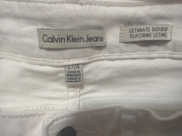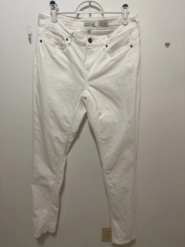 Get ready to rock these Calvin Klein white skinny jeans! They're a size 27 and feature a stylish skinny fit, perfect for any casual look. These jeans are in used condition, ready for their next adventure.