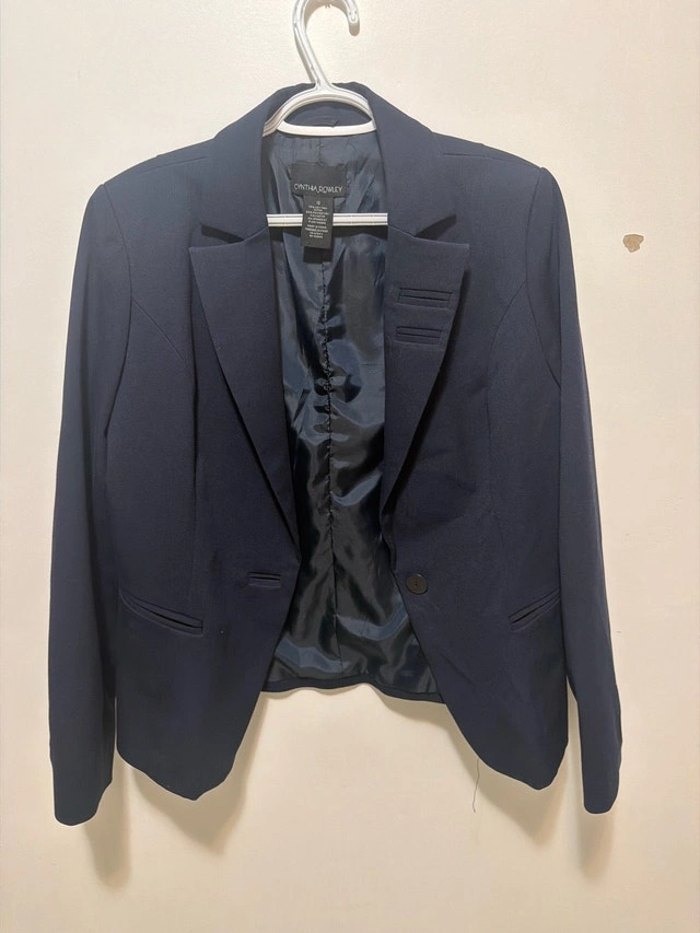 This is a gently used blazer by Cynthia Rowley in a versatile size Large (12-14), perfect for adding a touch of sophistication to any outfit. With its classic design, this blazer is a stylish addition to your wardrobe, ideal for both professional and casual occasions. It is in great condition.