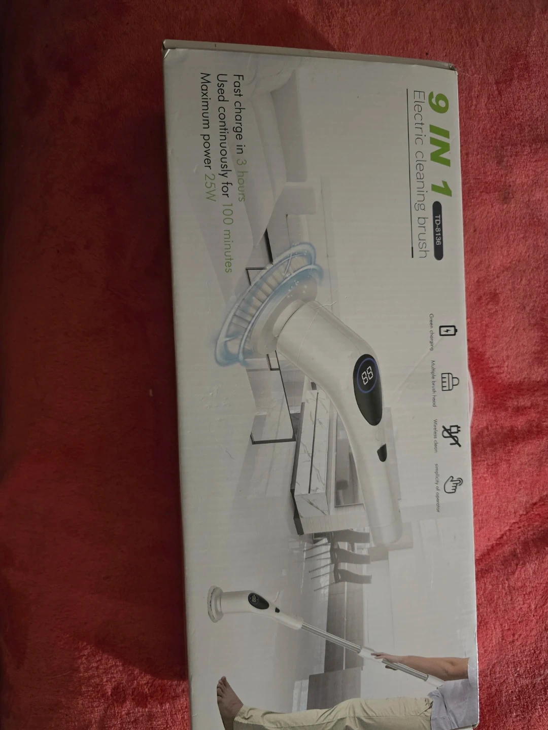 I'm selling a 9 in 1 electric cleaning brush. It's a versatile tool for various cleaning tasks. It can fast charge in 3 hours and be used continuously for 100 minutes with a maximum power of 25W. The box is included