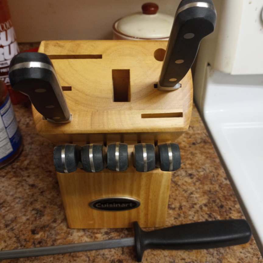 good day. Thanks for looking at this ad. I have these knives for sale. They are very good and sharp. Even comes with their own holder. text me if interested
