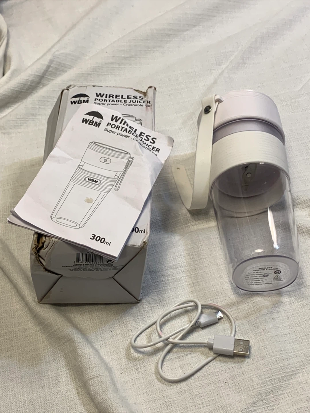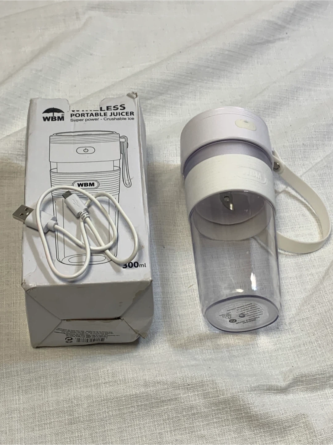 Selling a WBM Wireless Portable Juicer. It's in like-new condition and comes with the box and charger. This juicer is super powerful and can even crush ice! It holds 300ml and is perfect for on-the-go smoothies and juices