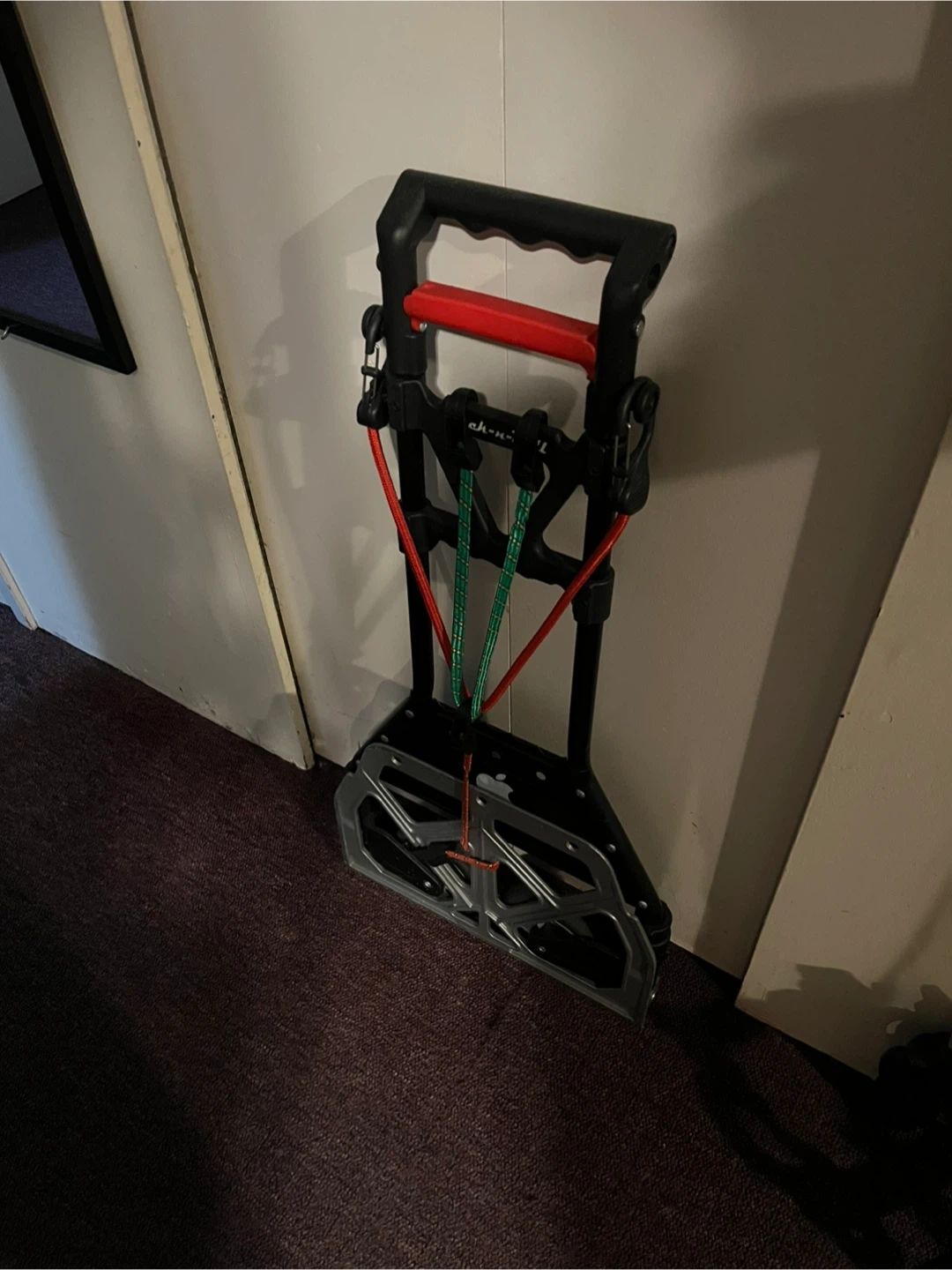 Selling a handy folding luggage cart! It's perfect for travel or moving items around. The cart is in great shape and folds up for easy storage. It features a comfortable handle and durable construction.