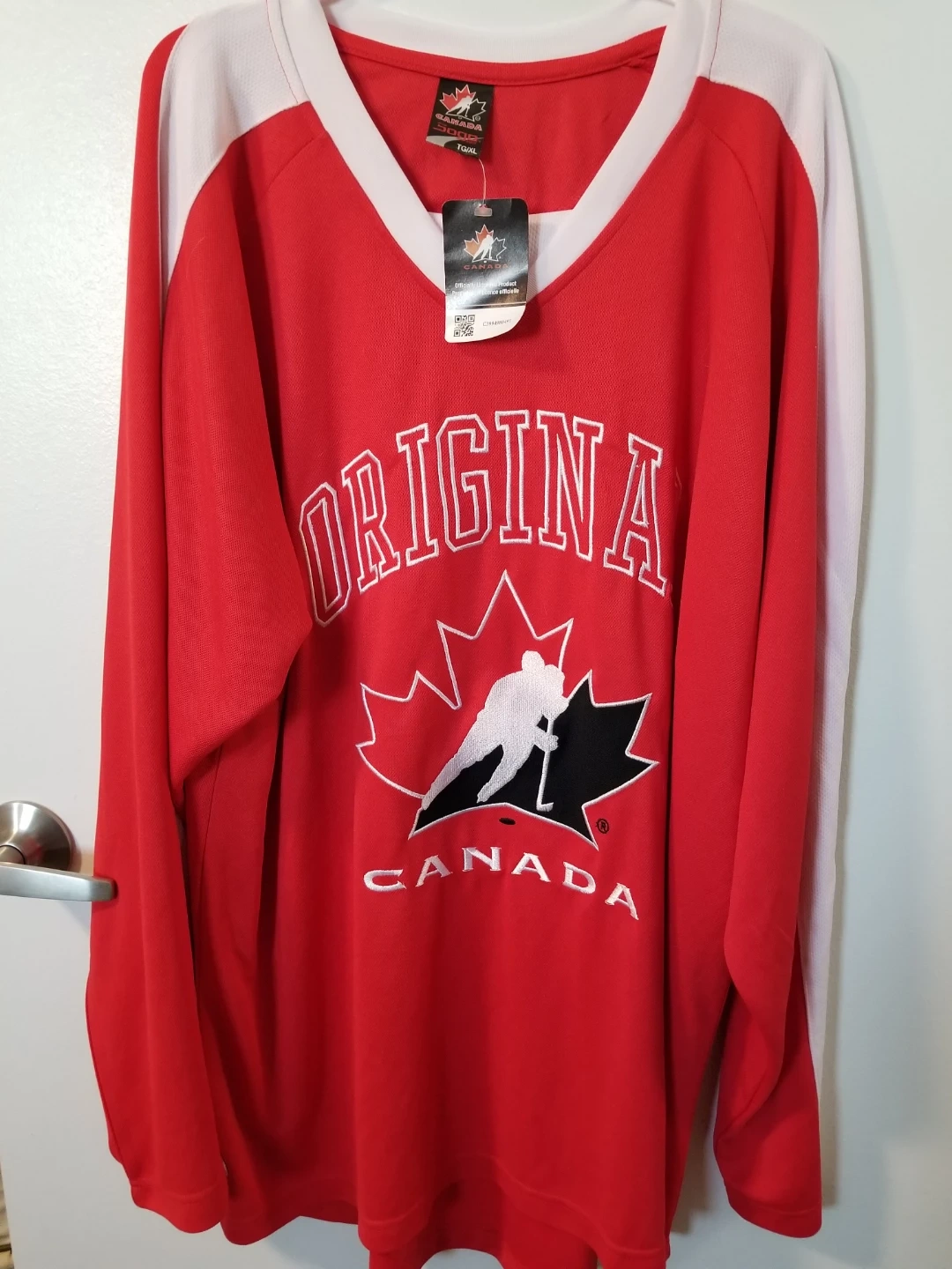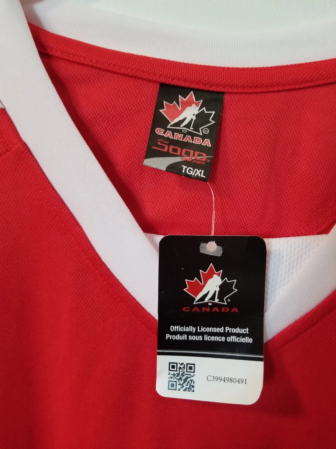 Selling a Canada Soga Sports hockey jersey in size TG/XL! It's red and white, and features the iconic Canada logo. A great piece for any hockey fan! Brand new with tag