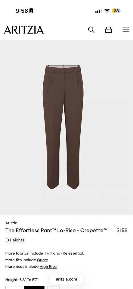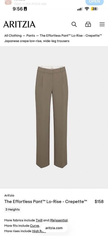 Aritzia Effortless Pants Lo-Rise - Crepette Size 6 NWT