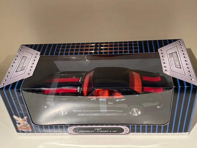 This Yatming 1967 Chevrolet Camaro Z-28 diecast model is a detailed 1:18 scale replica, perfect for collectors and car enthusiasts. The model is new in its original packaging and has never been displayed. It's a beautiful piece that captures the iconic design of the classic Camaro.