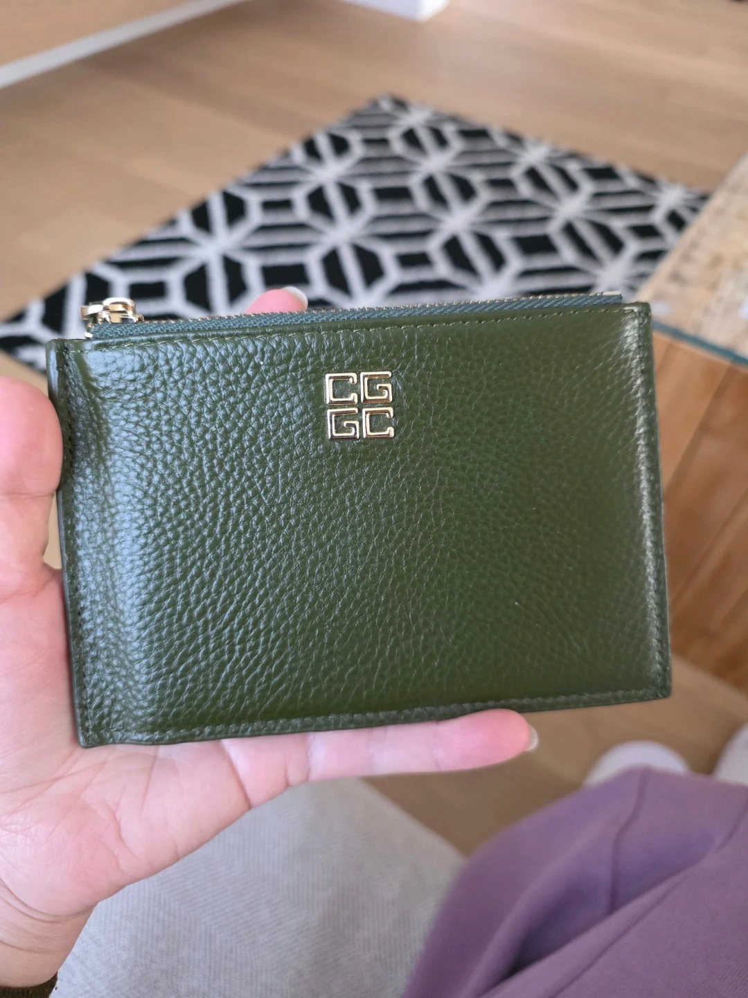 Selling a lovely Card wallet in a beautiful green leather! It's perfect for keeping your cards and cash organized.it has zipper pocket for coins . The wallet features a zippered compartment and several card slots. It's in great condition and ready for a new home!