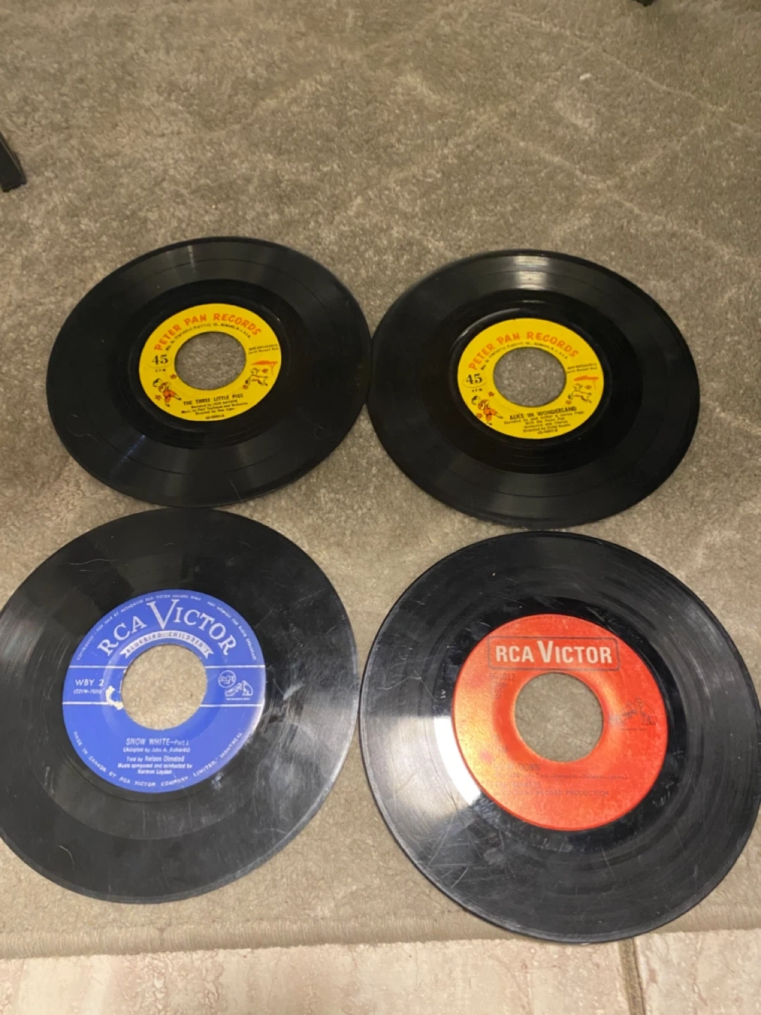 Included is a great selection of classic children’s story 45 RPM records, many dating from the late 1940s through the 1960s, making this a wonderful nostalgic set.