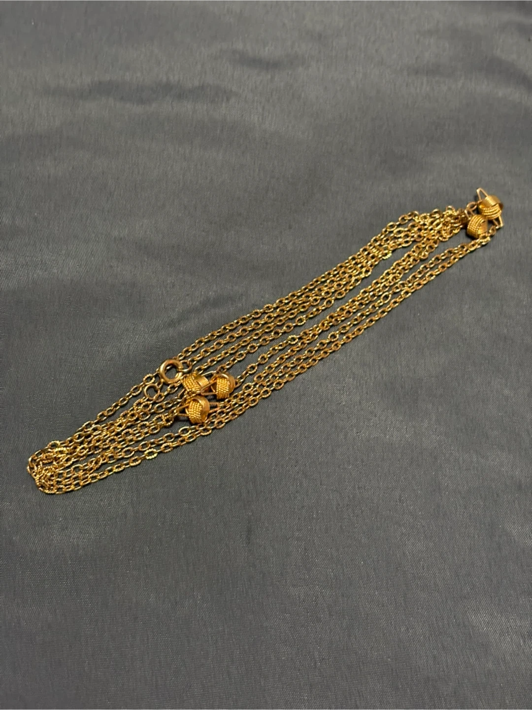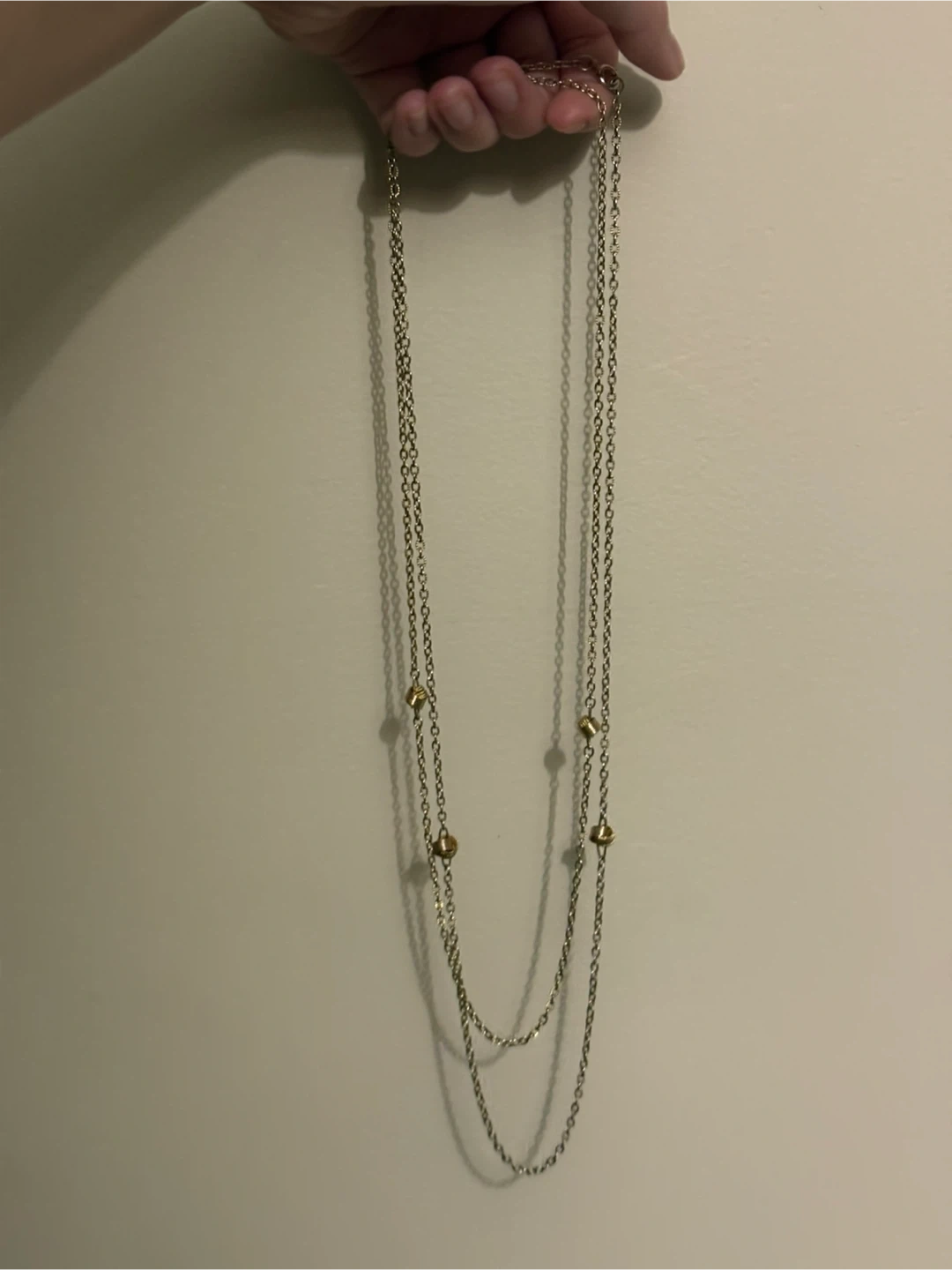Selling a long, layered gold necklace. It's in great condition and adds a touch of elegance to any outfit!