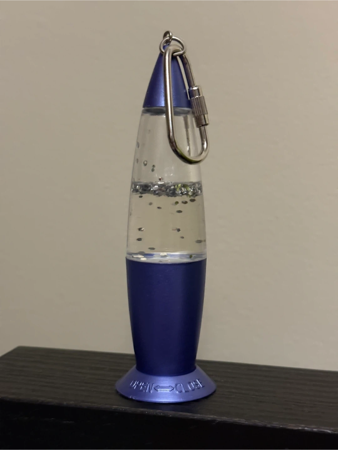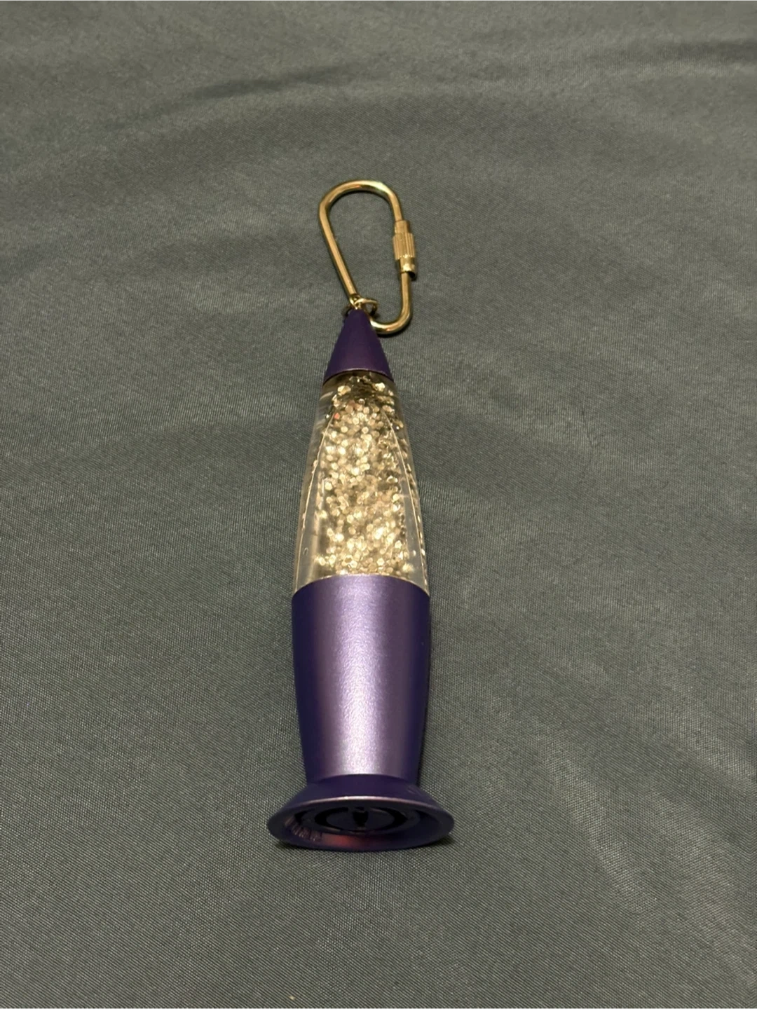 Add a bit of groovy light to your keys with this mini lava lamp keychain! It's a fun little accessory with a purple base and a clear body filled with glitter. It also has a handy clip to attach to your bag or keys.