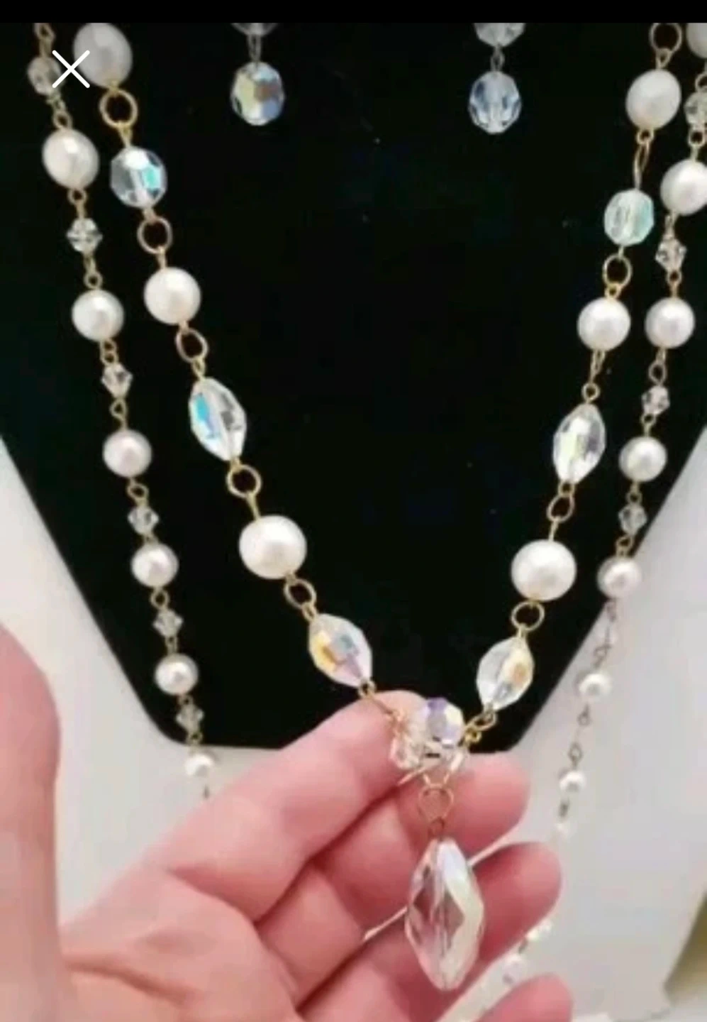 the other set at my other listing. Beautiful necklace and earrings set featuring pearls and crystals. The necklace has a teardrop crystal pendant, and the earrings complement the set with matching crystals. Perfect for adding a touch of elegance to any outfit!