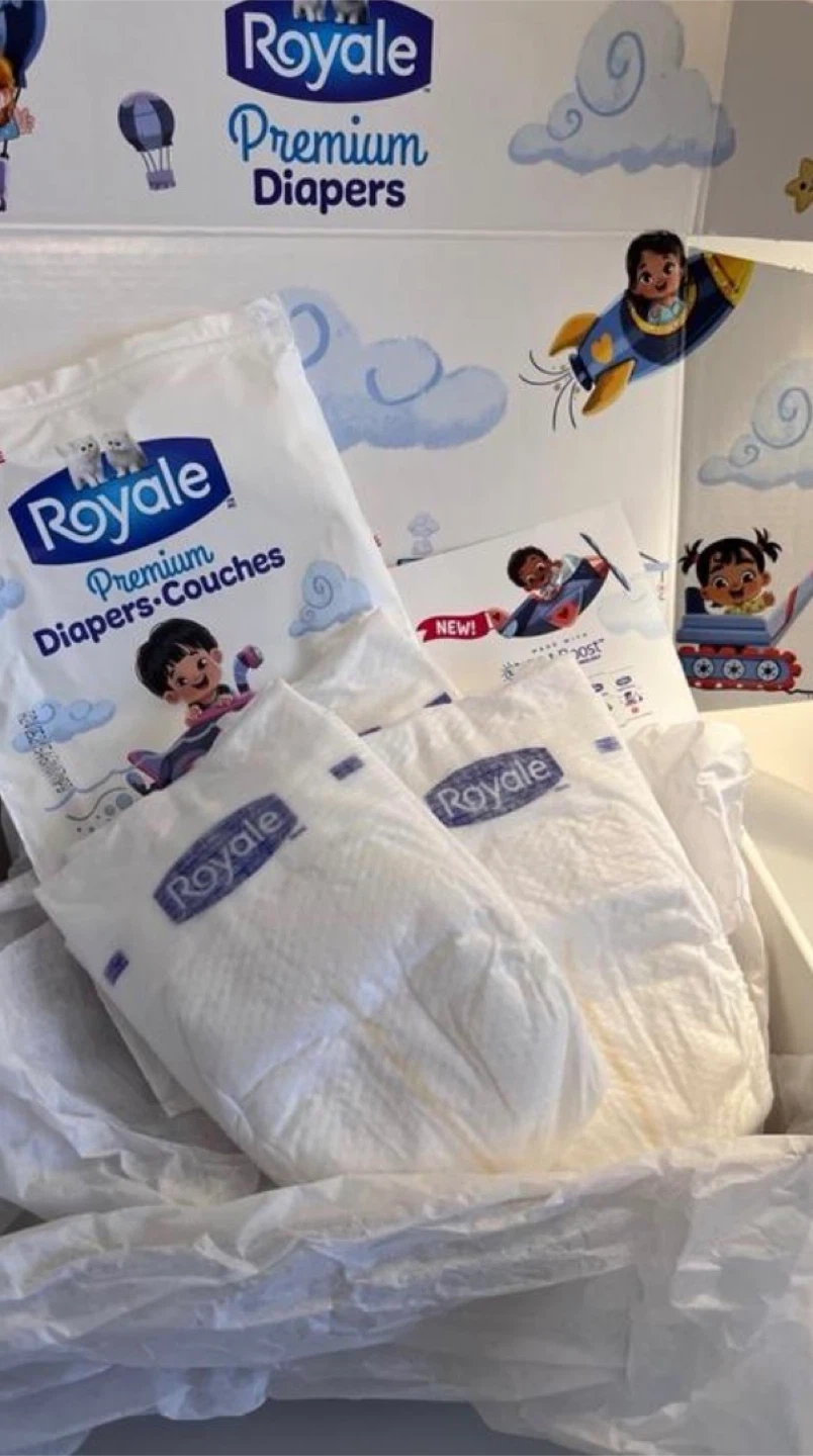 Selling 4 PACKS of Royale Premium Diapers in size M. These diapers are hypoallergenic and free from latex, fragrances, dyes, phthalates, chlorine bleaching, and parabens. Keep your little one comfy and dry!