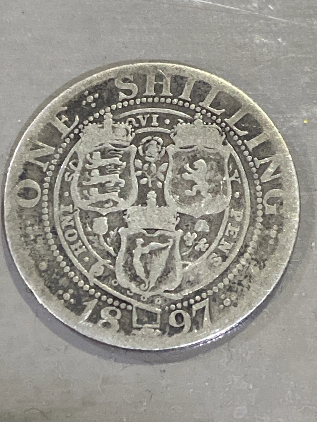 Selling a vintage 1897 Victoria One Shilling coin. It shows its age but has a lot of character! The coin features Queen Victoria on one side and the Royal Arms on the other. A great piece for any coin collector