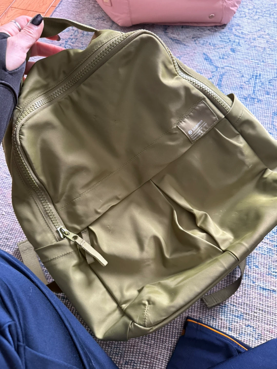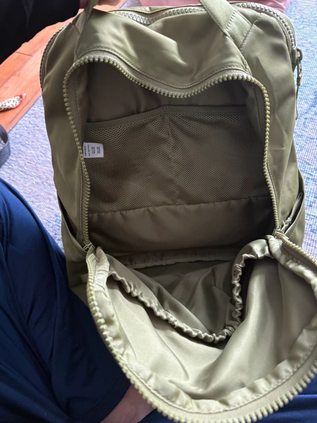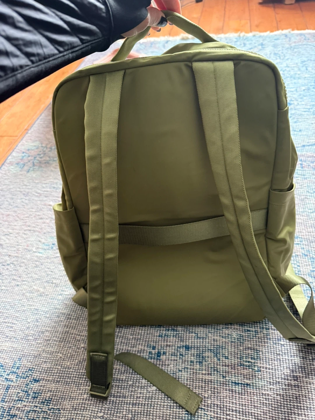 Selling a Lululemon backpack in an olive green colour. It's in great condition and ready for a new home! Perfect for school, work, or everyday adventures