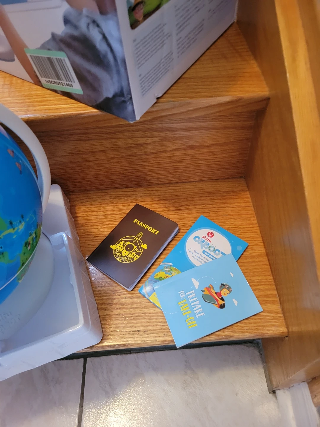 ► The box comes with a 10” globe, passport, stamps, country flag stickers, and a detailed help guide.