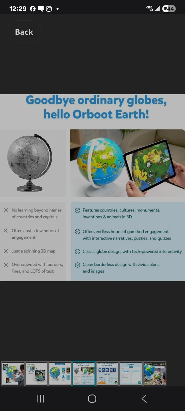 ► Orboot Globe + app takes the child on an augmented reality based journey around the world. Fun. Interactive. Educational. (No borders and no names on Globe)
