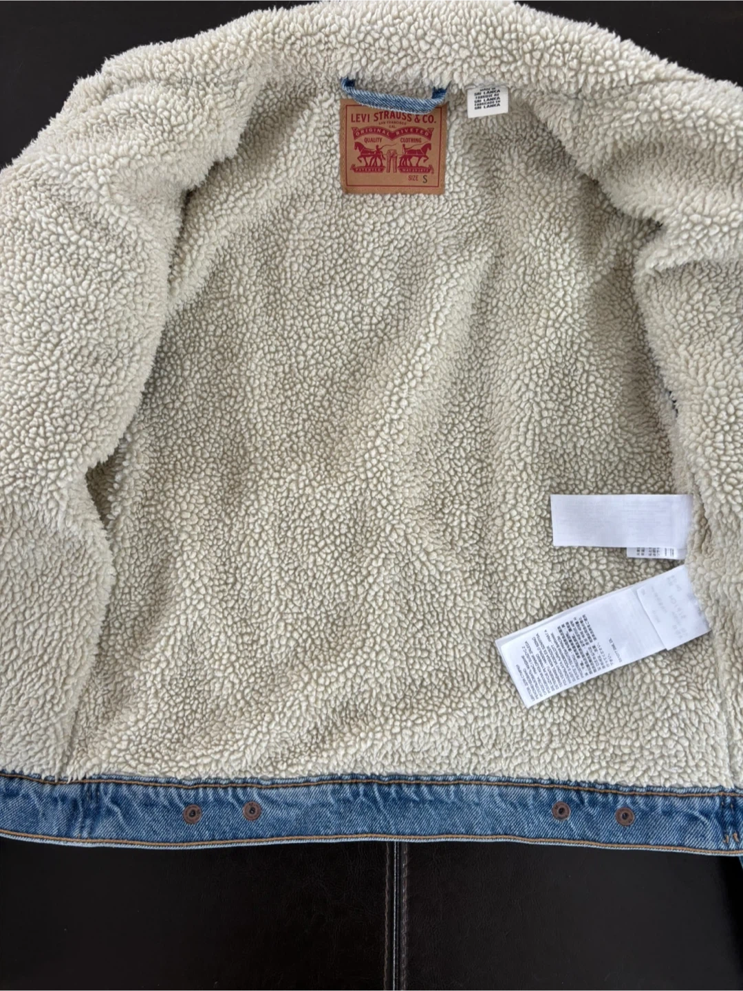 Levi Strauss & Co. Sherpa Jacket in size small! This denim jacket has a cozy sherpa lining. Perfect for adding a bit of warmth and style to your outfit. It is from a smoke and pet free home.