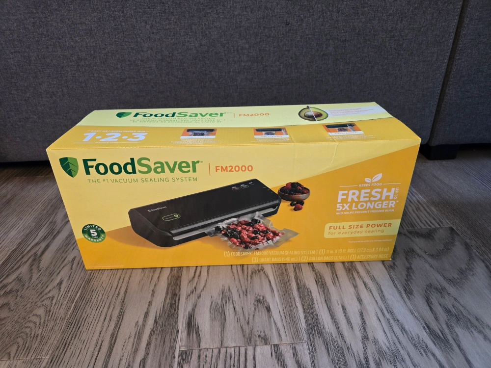 I'm selling a brand new FoodSaver FM2000 vacuum sealing system still in its original box! It's the #1 vacuum sealing system and keeps food fresh up to 5x longer. It's easy to use with a simple 1-2-3 process. The box includes: