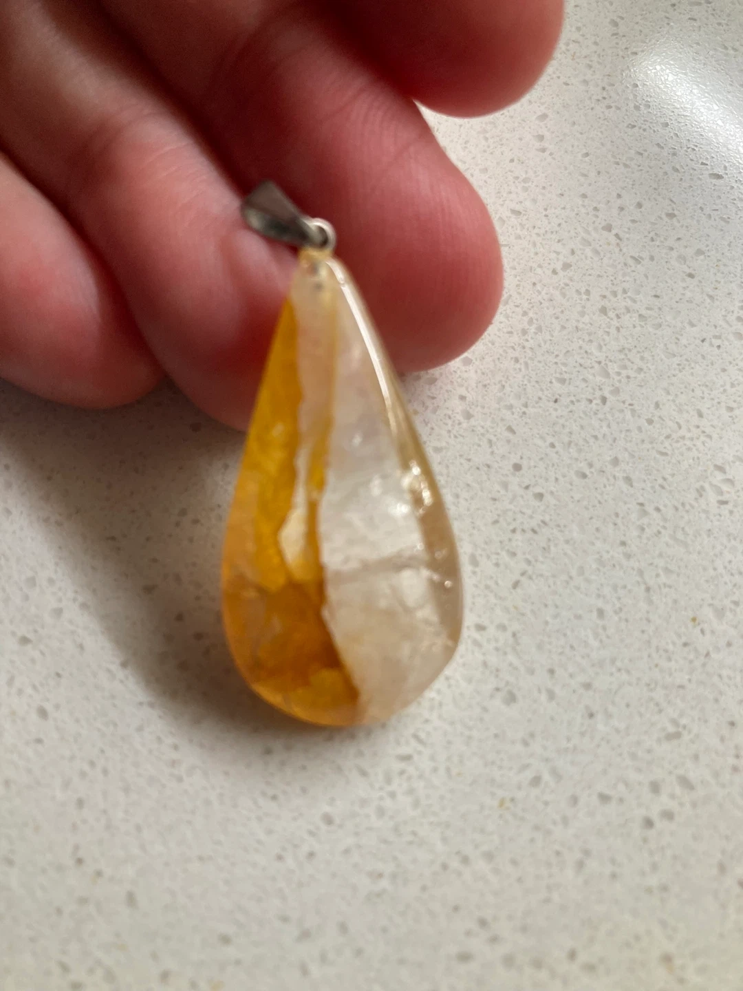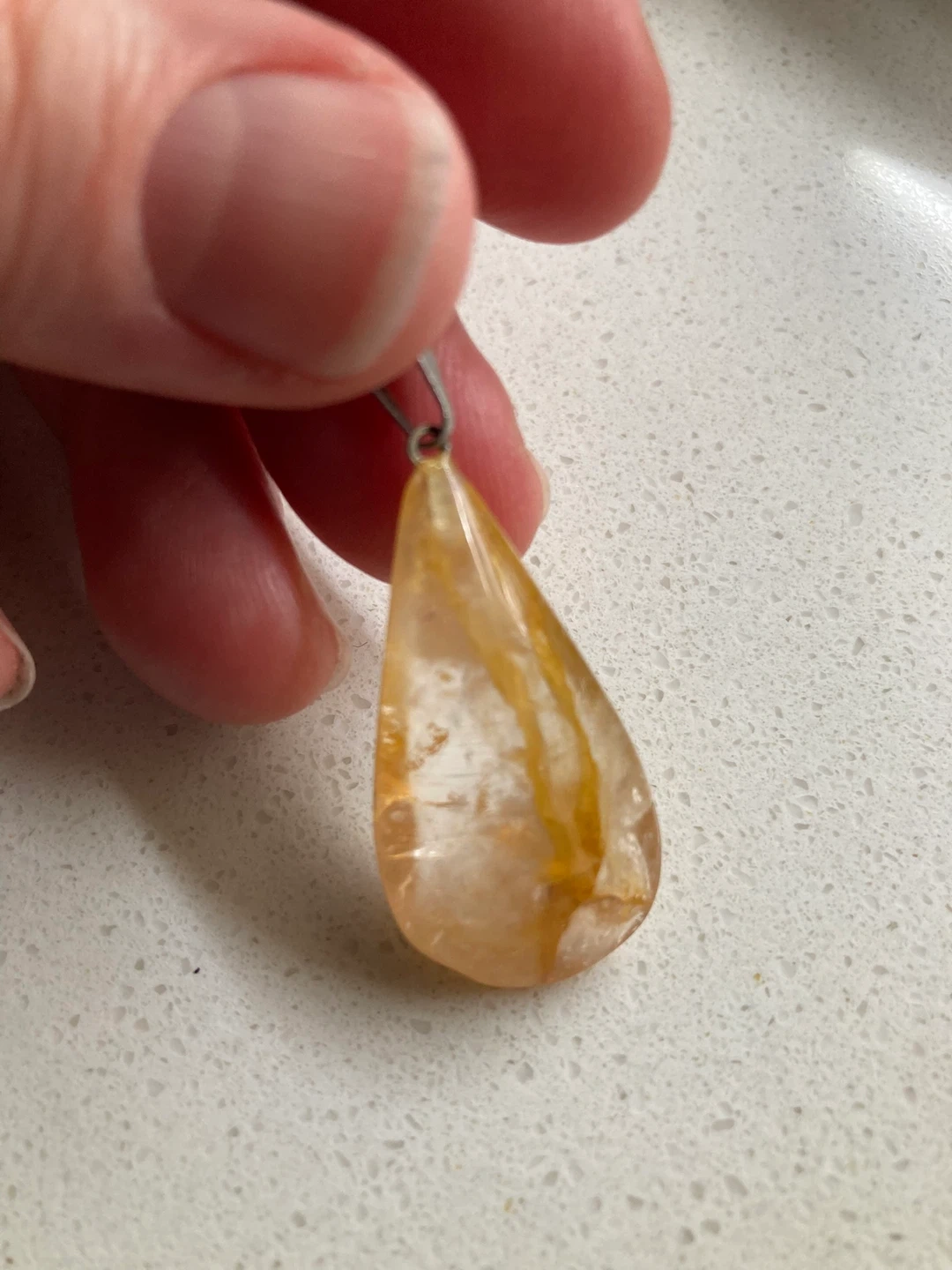 Selling a lovely quartz teardrop pendant. No dings or scratches, has never been worn. It has a beautiful mix of yellow and clear tones, making it a unique piece for any collection.